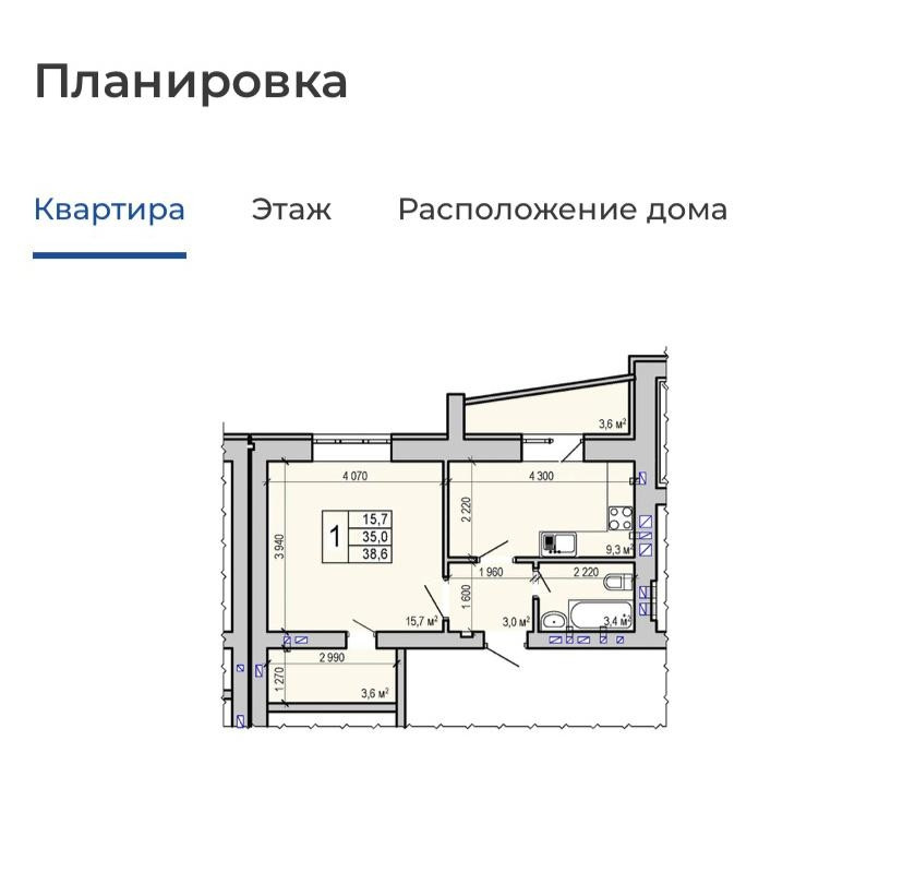 Общая площадь 35 м2