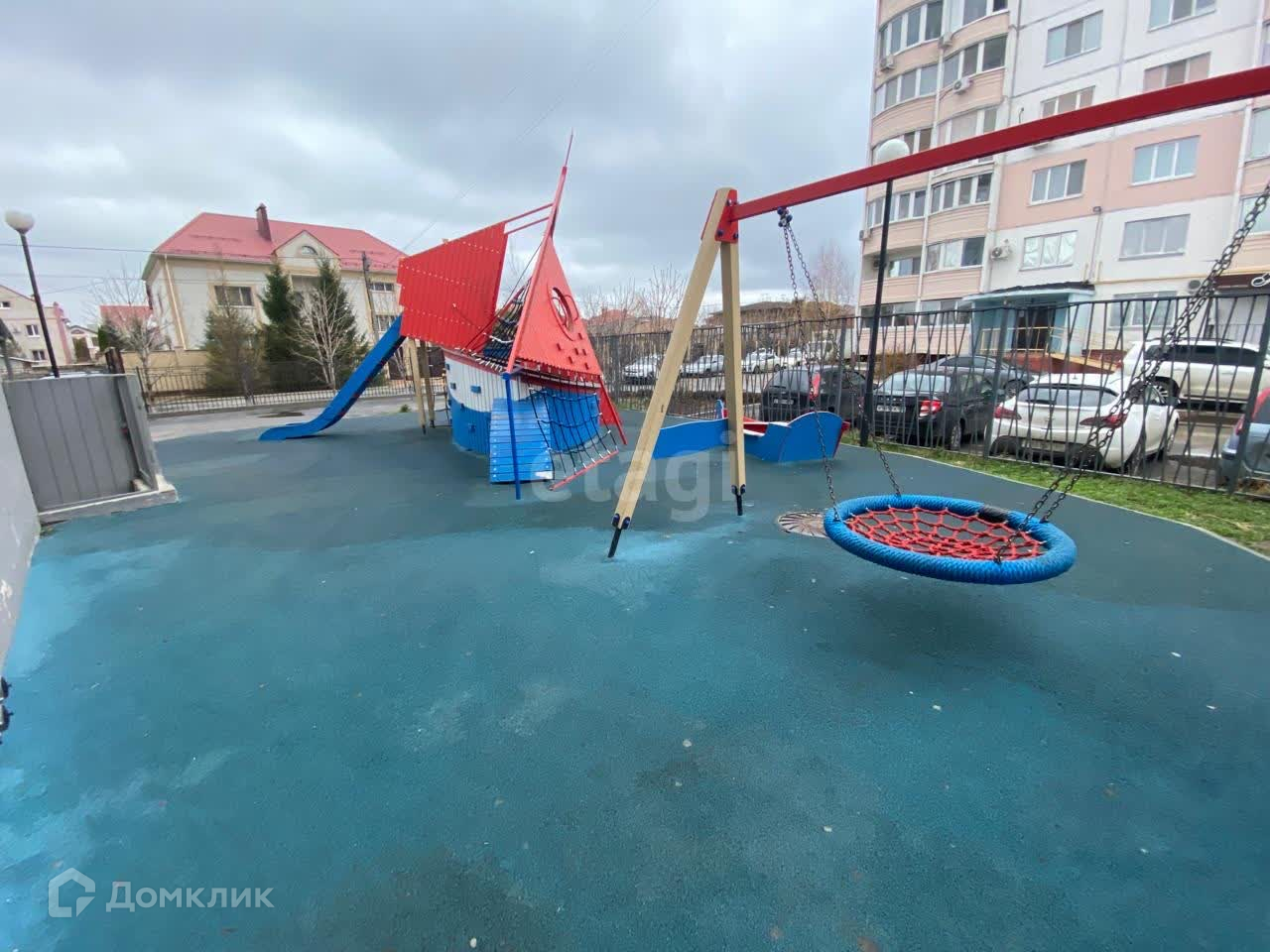 Закрытый, ухоженный двор с детской площадкой.