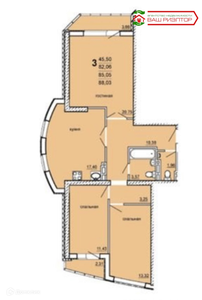 Количество комнат 3