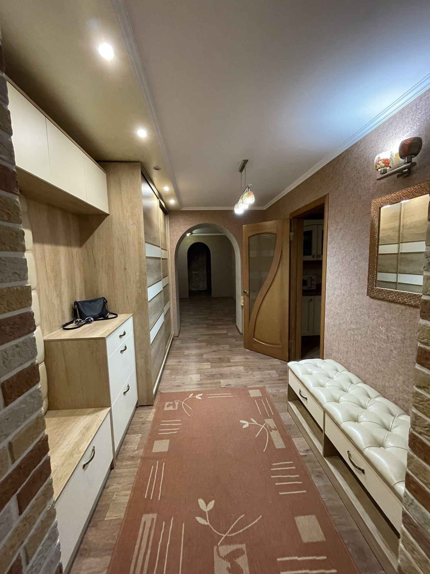 Да, да, это ТА САМАЯ КВАРТИРА из твоей «Карты желаний» О КОТОРОЙ ТЫ так долго МЕЧТАЛ! В центре г. Энгельса продается уютная 3-х комнатная квартира общей площадью 105 кв.м. с удобной планировкой и двумя утепленными лоджиями (одна из которых увеличивает пространство в спальной комнате). Зал – большой, просторный с электрокамином, мебелью фирмы «Миасс» (натуральный дуб) и мягкой мебелью реклайнер (натуральная кожа), которая (легким движением руки) превращает атмосферу зала в уютный vip-зал кинотеатра. Детская комната оборудована всем необходимым для подростка и его друзей: спортивный уголок, просторный 1,5 спальный диван, двухъярусная кровать, письменный стол и шкаф для хранения вещей (мебельная фабрика «Дядьково»). Особой «изюминкой» в квартире является спальная комната: в бежево-лиловых тонах и изысканным интерьером из современной стильной мебели (м/ф «Дядьково»), включающей шкаф-купе, который по своей вместительности заменяет большую гардеробную. Санузел раздельный. На кухне встроенная мебель из трех видов натурального дерева в классическом венецианском стиле со встроенной техникой: варочная панель, духовой шкаф, посудомоечная и стиральная машины, встроенный холодильник (немецких брендов Neff и Kuppersberg). В обеденной зоне круглый, массивный стол из натурального дуба. Мебель в прихожей новая (выполнена по индивидуальному заказу). Двери натуральный шпон сосны, входная дверь Беккер. Освещение многоуровневое и разделено на зоны (имеется датчик движения), теплые полы, автономная регулировка отопления, счетчики учета (тепло- и водоснабжения, электричества и газа), три сплит системы («Toshiba»), видеодомофон. При продаже мебель и техника остается новому владельцу. Также в подарок собственнику этой замечательной квартиры остается кладовка в тамбуре, оборудованная стеллажами. Дом кирпичный, лифт грузовой, двор ухоженный и закрытый (с автоматическими воротами). ТСЖ работает исправно, коммунальные платежи низкие. В шаговой доступности все необходимые объекты социального назначения: школа, детский сад (во дворе два частных), сетевые магазины, кафе, аптеки, фитнес-клуб и клиника «Доктора Трухманова» Хорошая транспортная развязка в любую точку города. Квартира продается в связи с переездом в другой город. Рассмотрим все виды расчета!!! Убедительная просьба РИЕЛТОРОВ по вопросу продажи НЕ БЕСПОКОИТЬ! Я САМ СЕБЕ РИЕЛТОР!!!