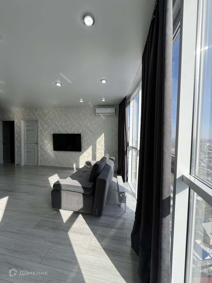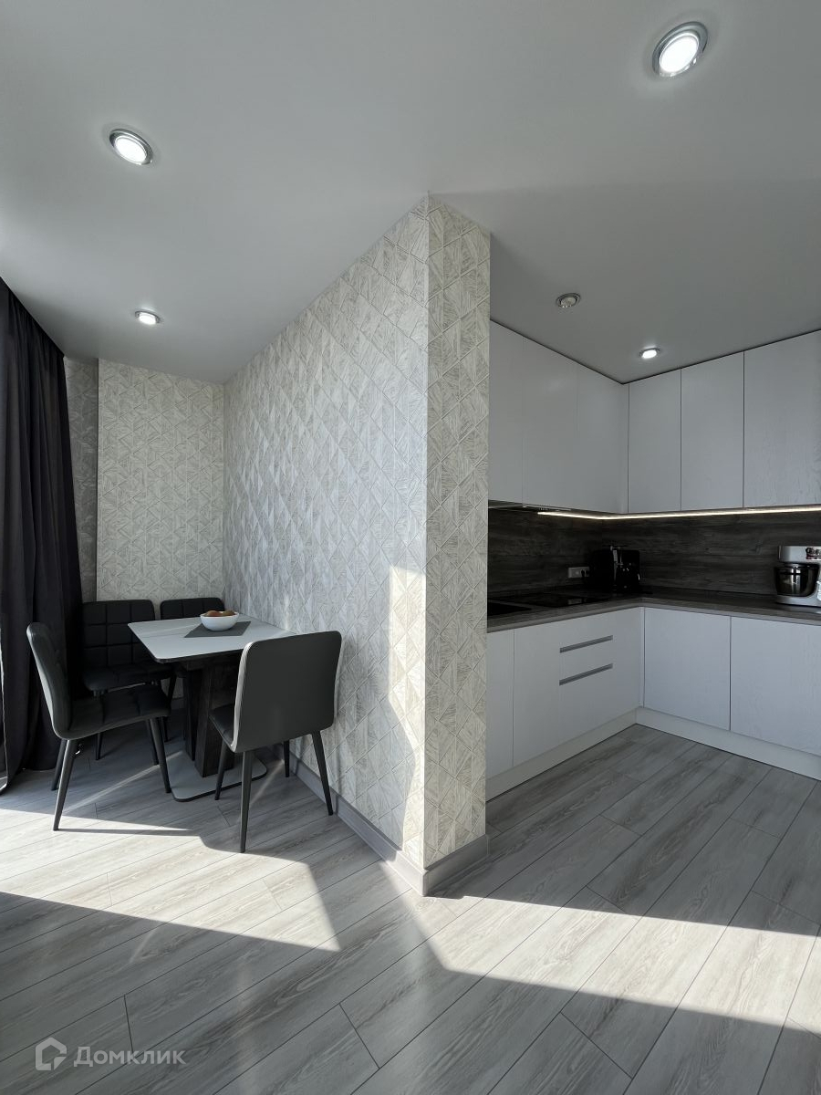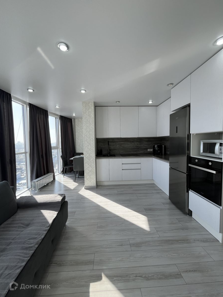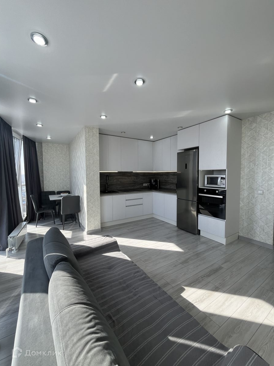 Площадь квартиры составляет 52.02 кв.м., из которых 20 кв.м. отведены под кухню - гостиную с панорамными окнами с видом на город.