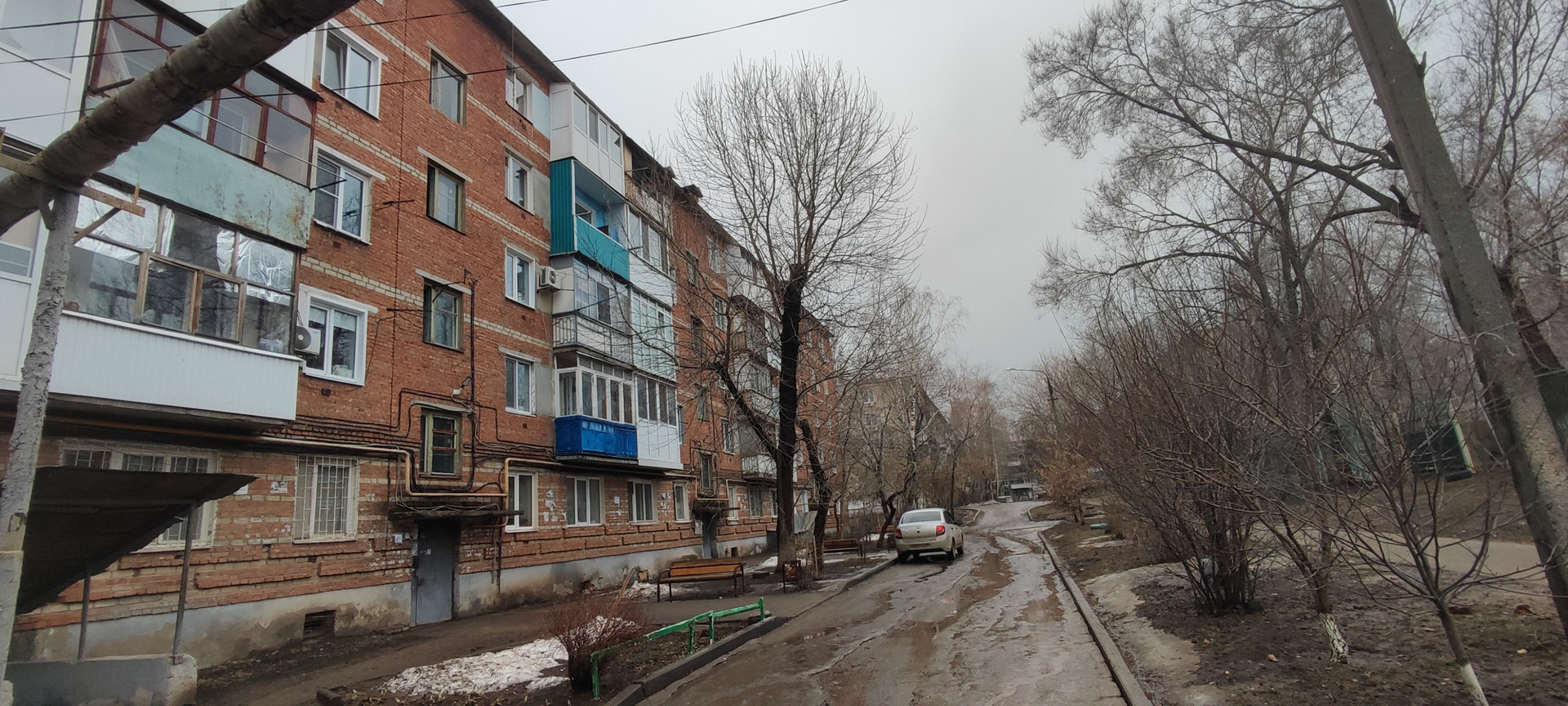 Вид из окна двор, улица
