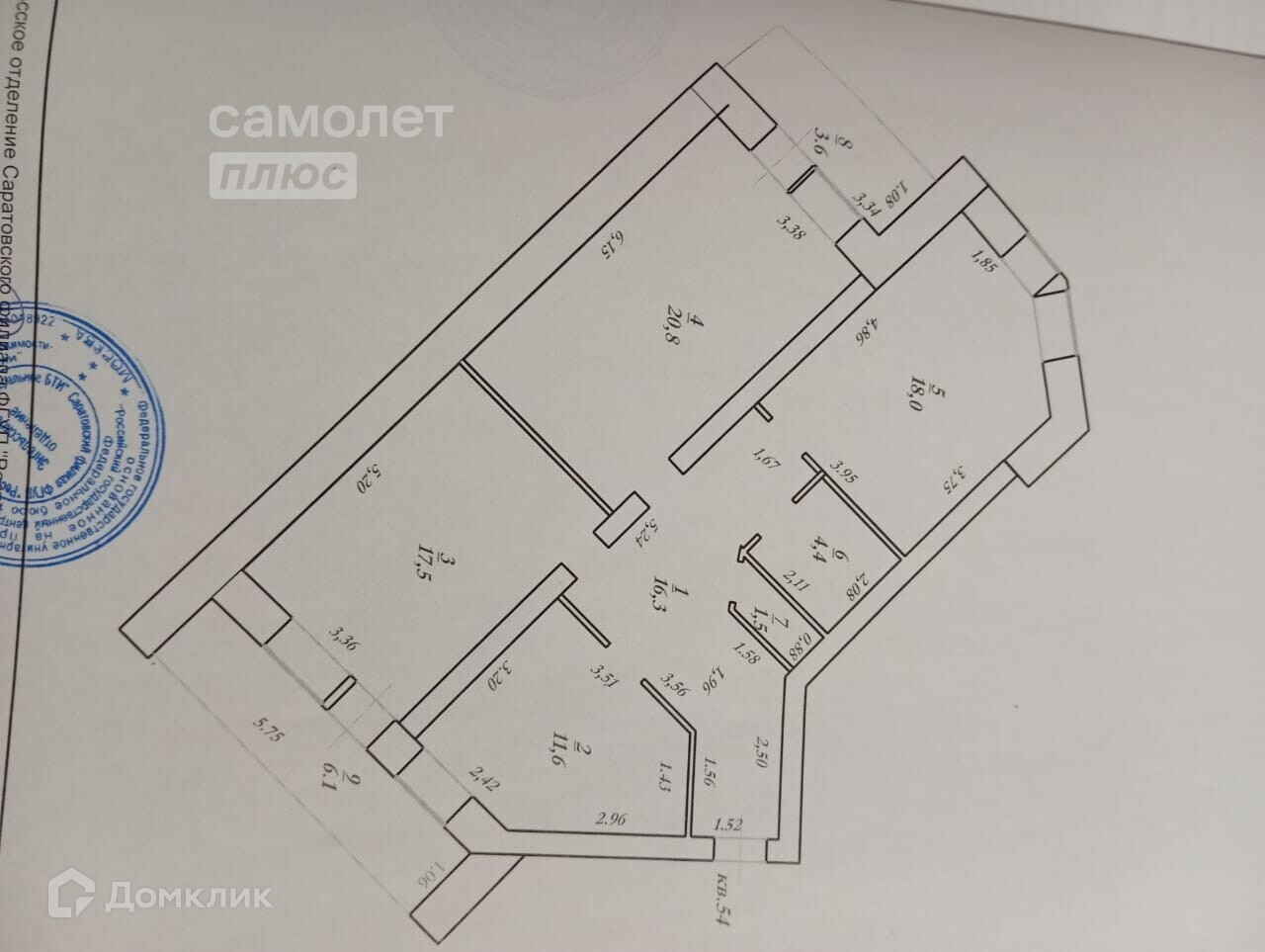 Жилая площадь 56.3 м2