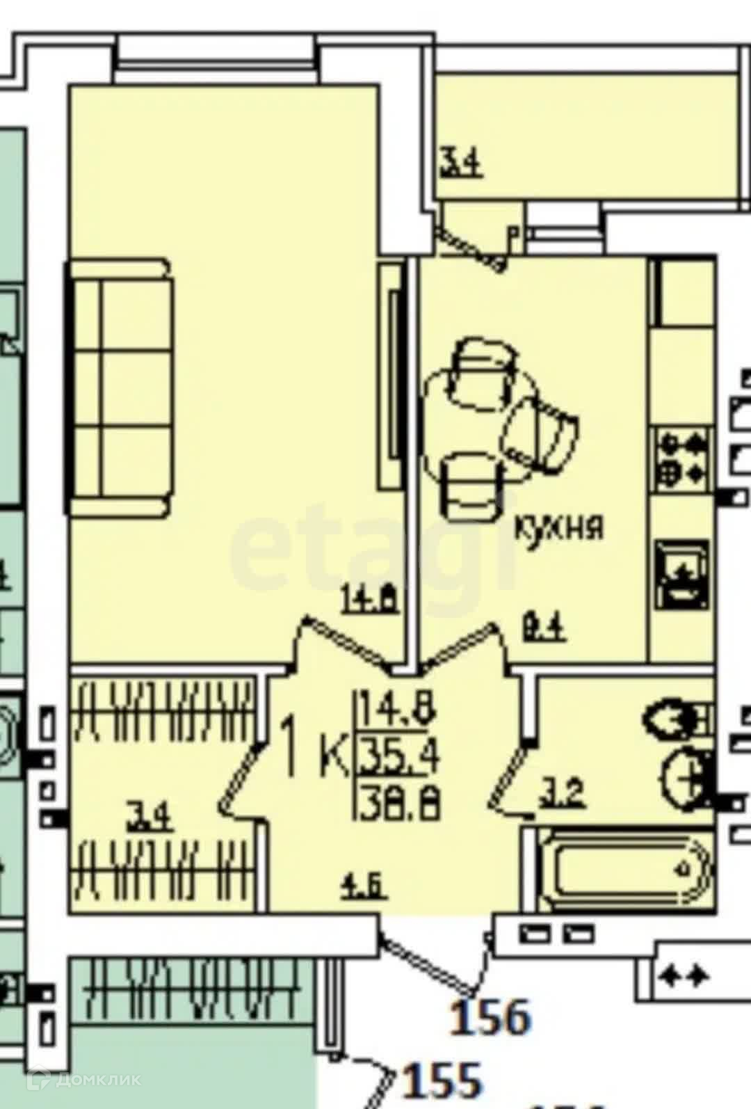 1-комнатная квартира, 38.8 м2, этаж 6 / 10, на продажу в Энгельсе, микрорайон Энгельс-9, 1