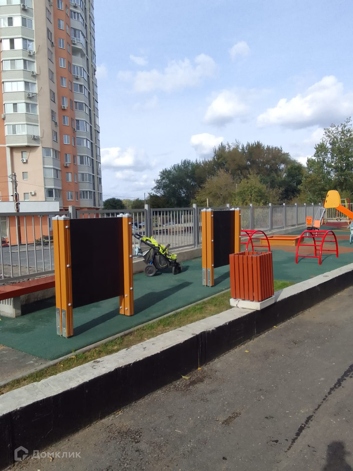 Во дворе в доступе мягкие детские площадки, бесплатные парковочные места, за домом есть трёхуровневый паркинг.