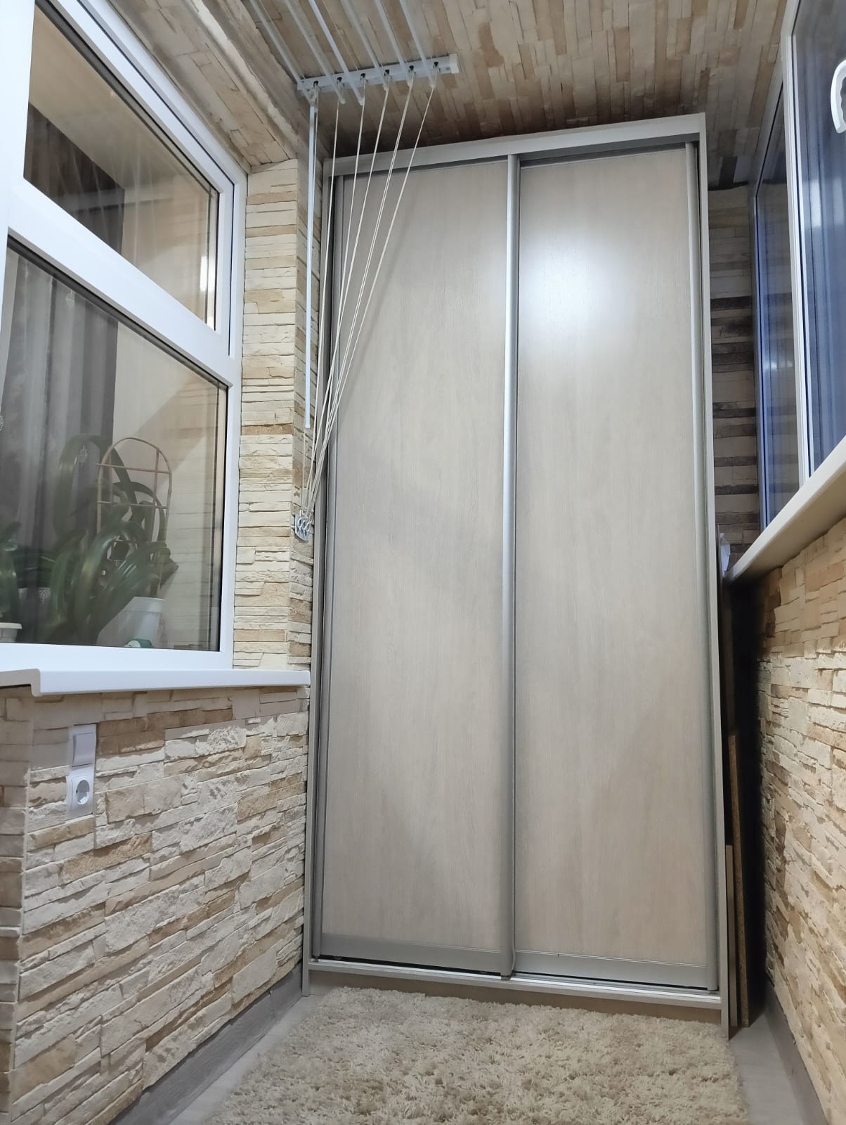 Лоджия отделана искусственным камнем.