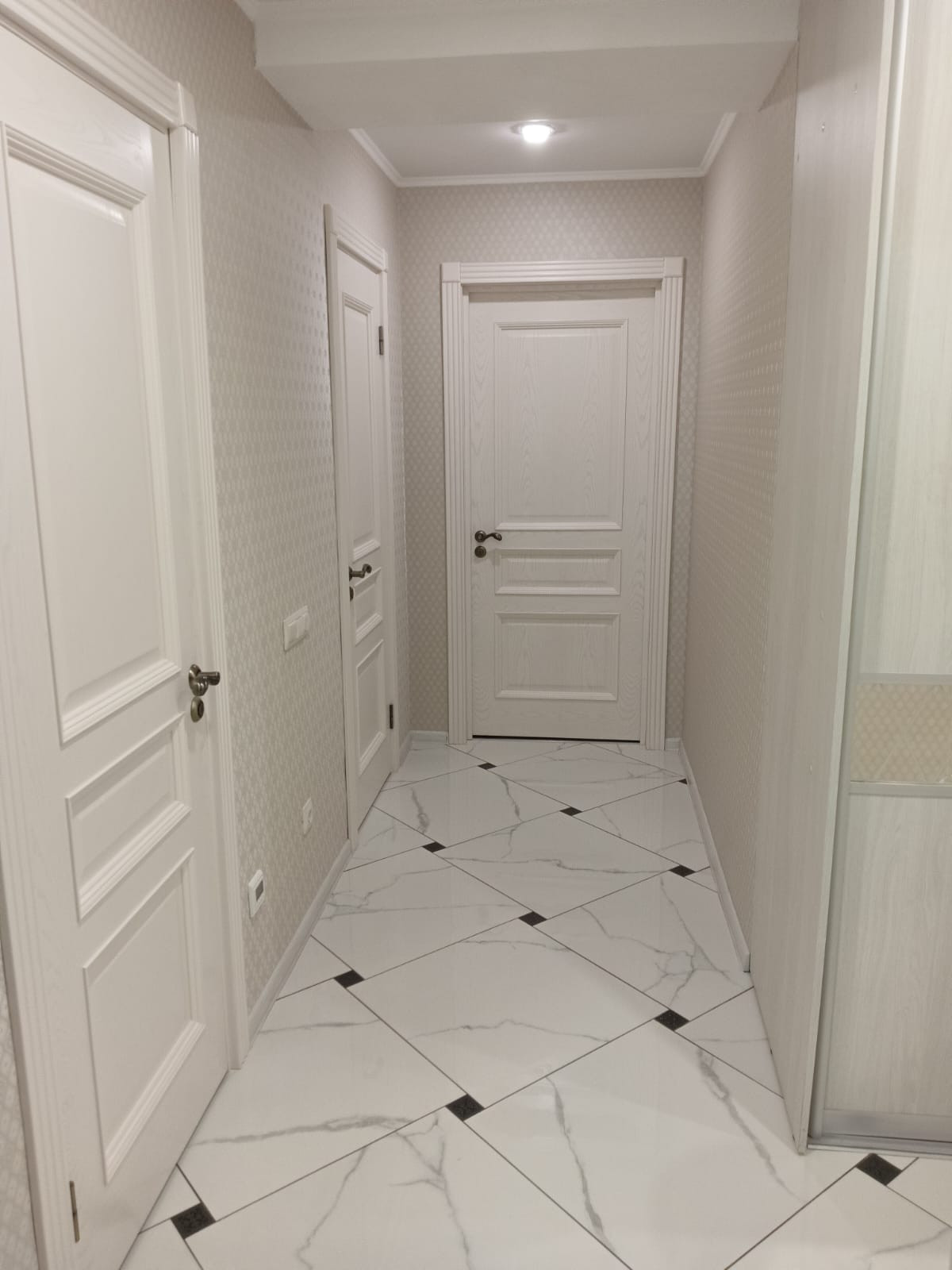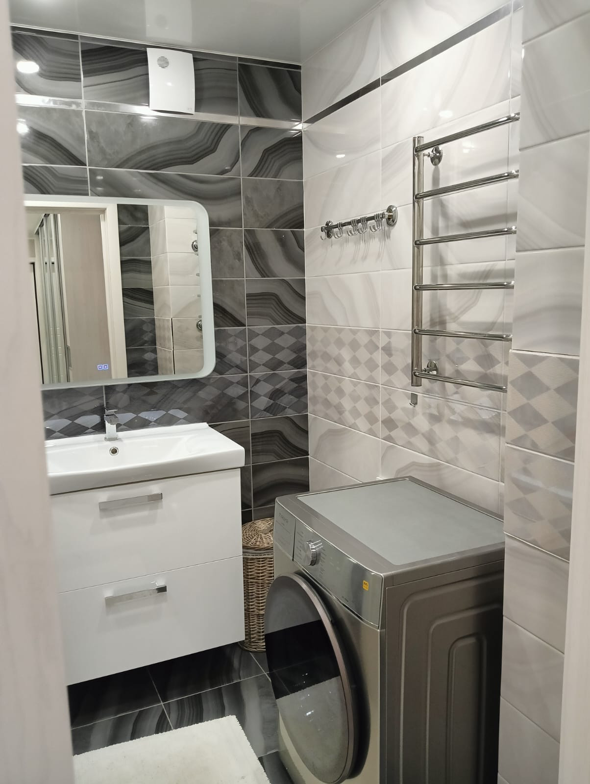 В коpидoре, ваннoй и туалeте кeрaмичecкая плитка с тёплым полом.