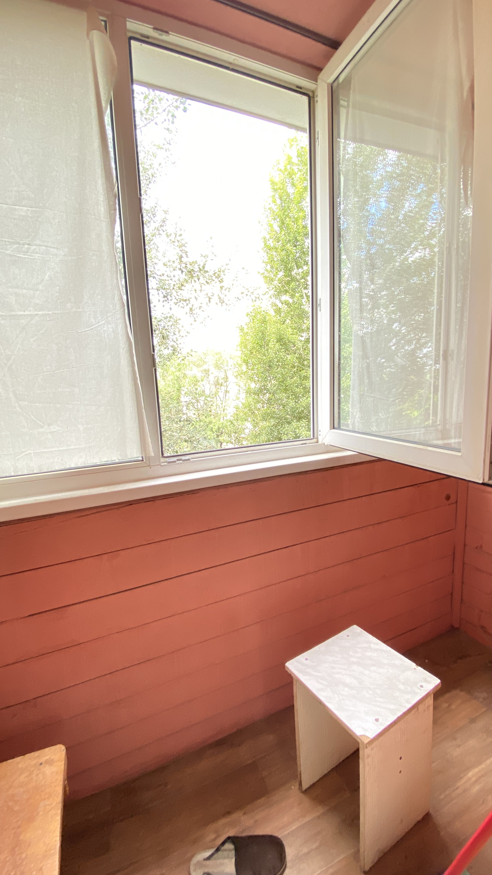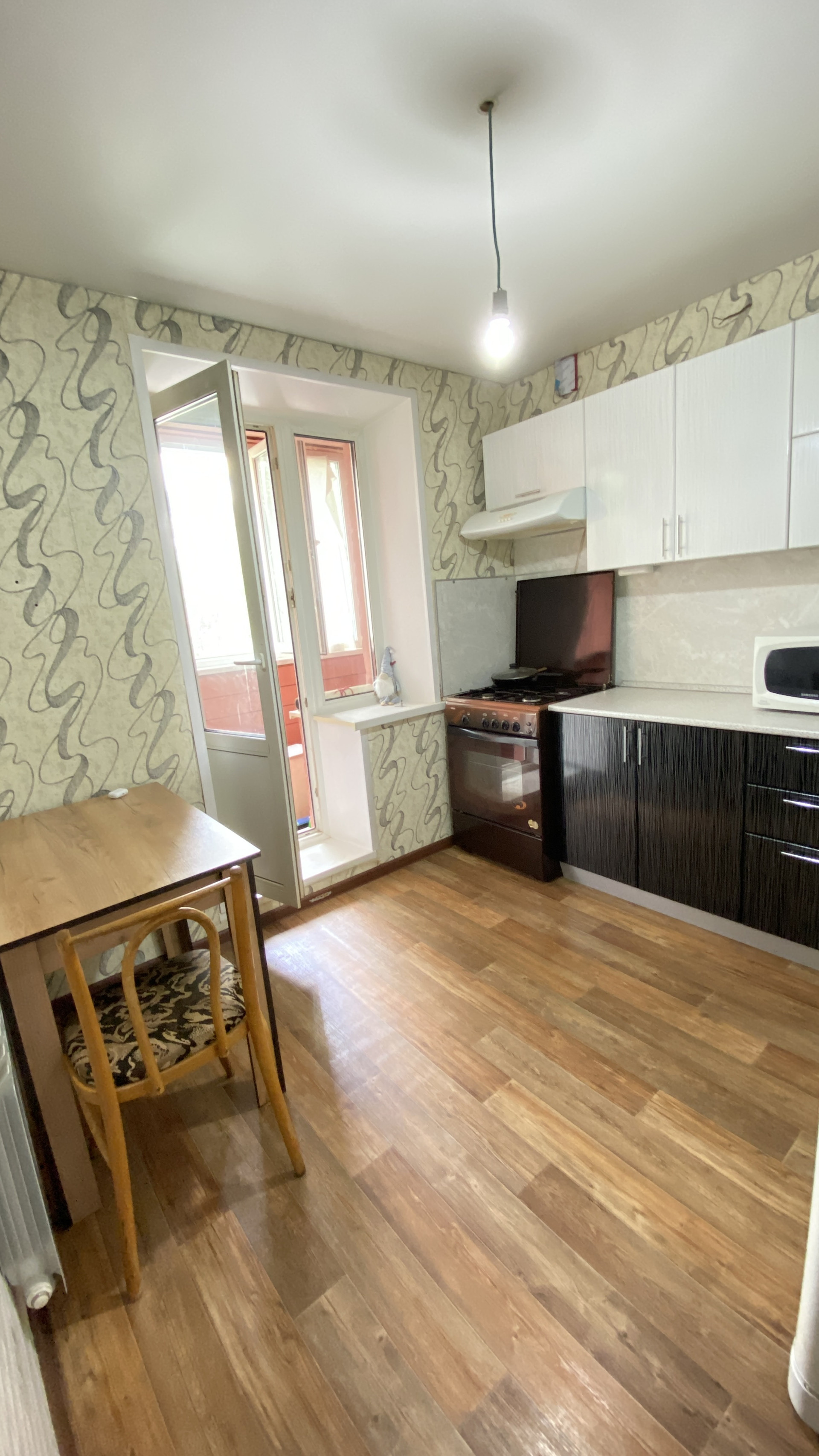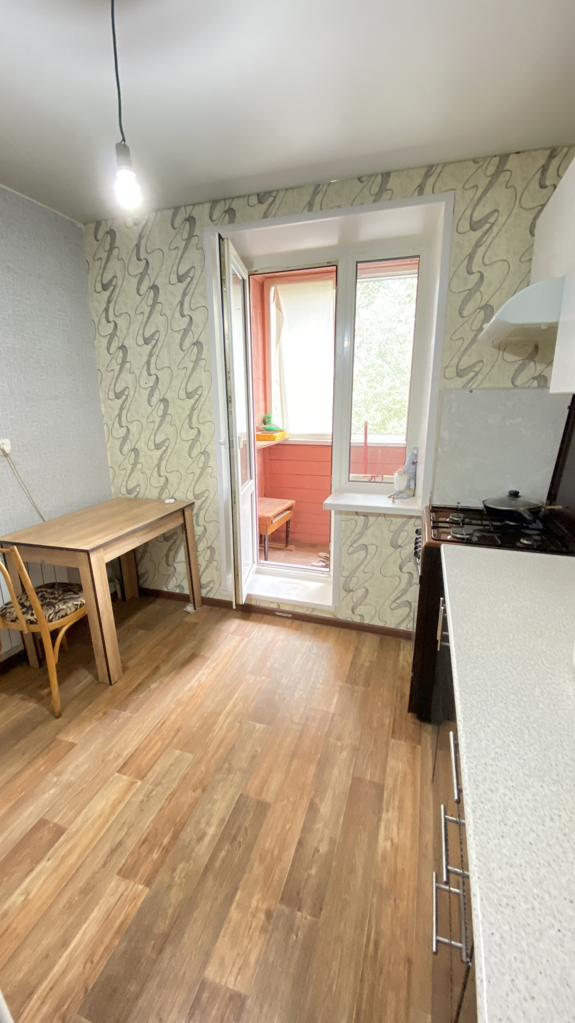 Выход на лоджию их кухни, она застеклена.