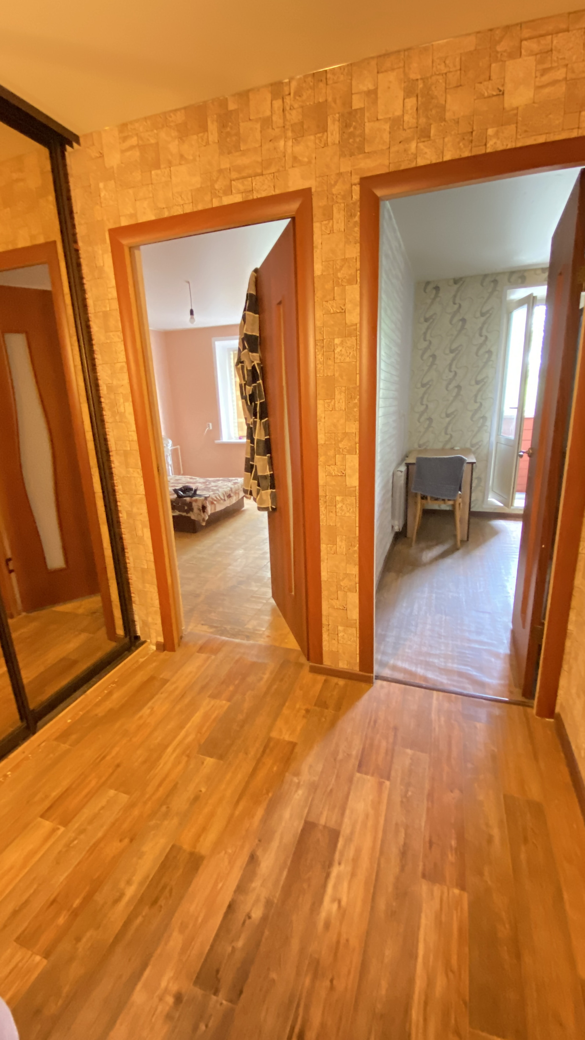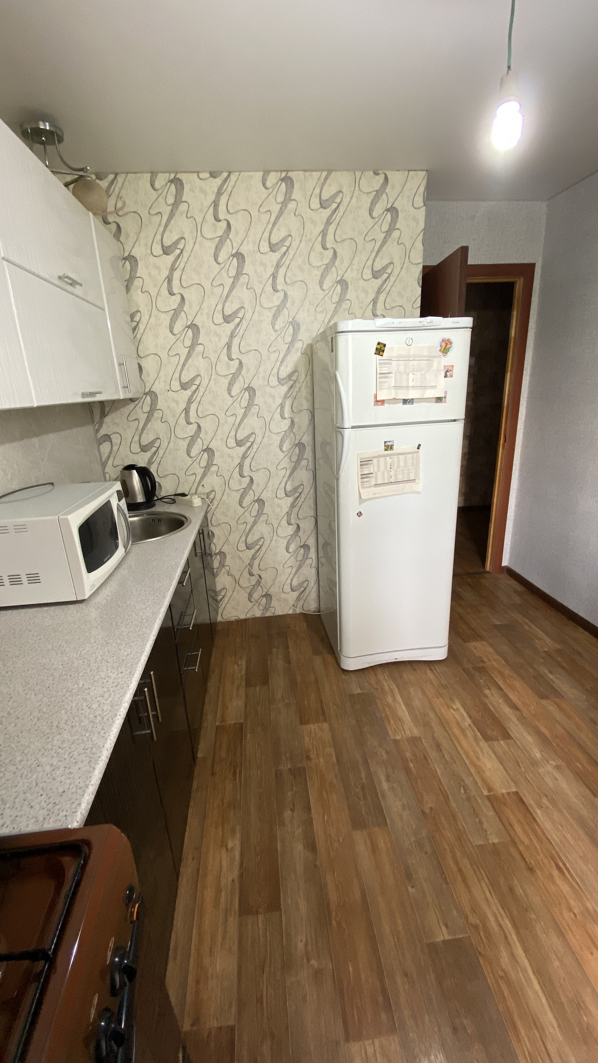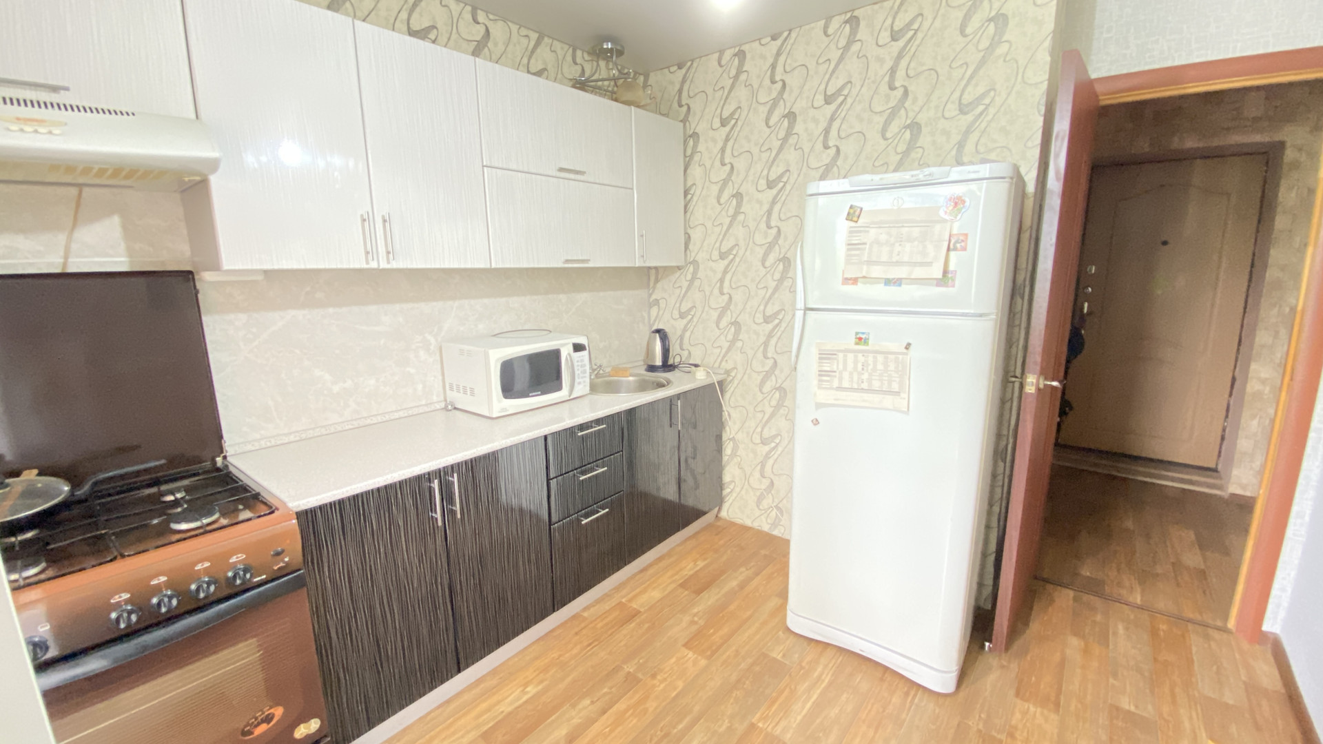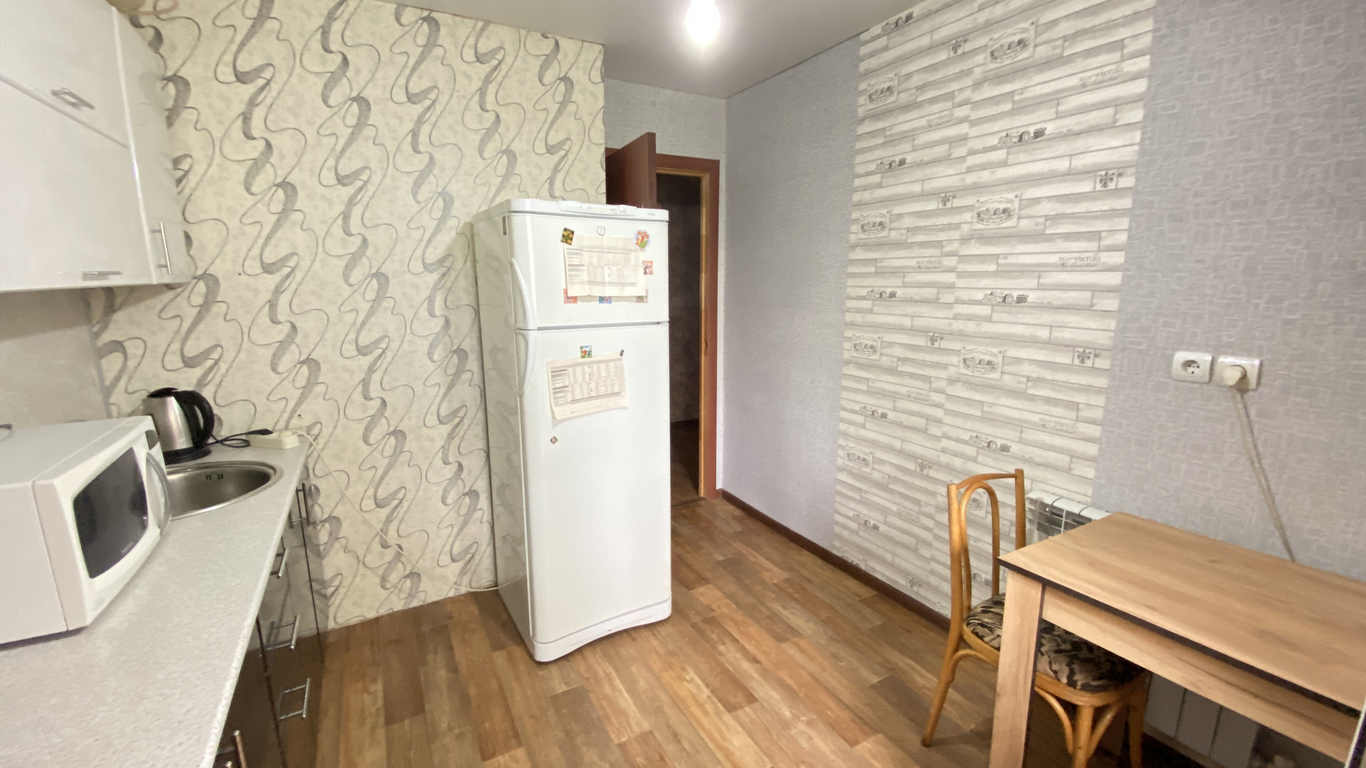 При продаже в квартире остается встроенная кухня, холодильник, встроенный шкаф-купе.