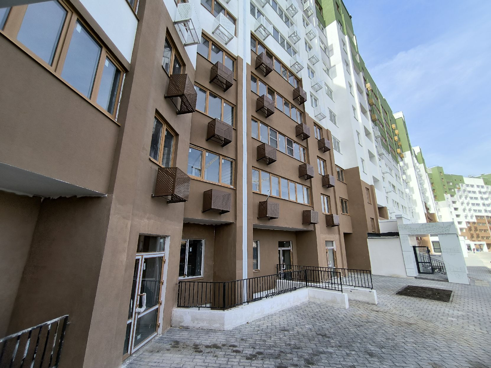 Безбарьерная среда, зона для зарядки электросамокатов в подъезде, большие балконы на общей территории в подъезде - входные группы продуманы в каждом подъезде до мелочей.