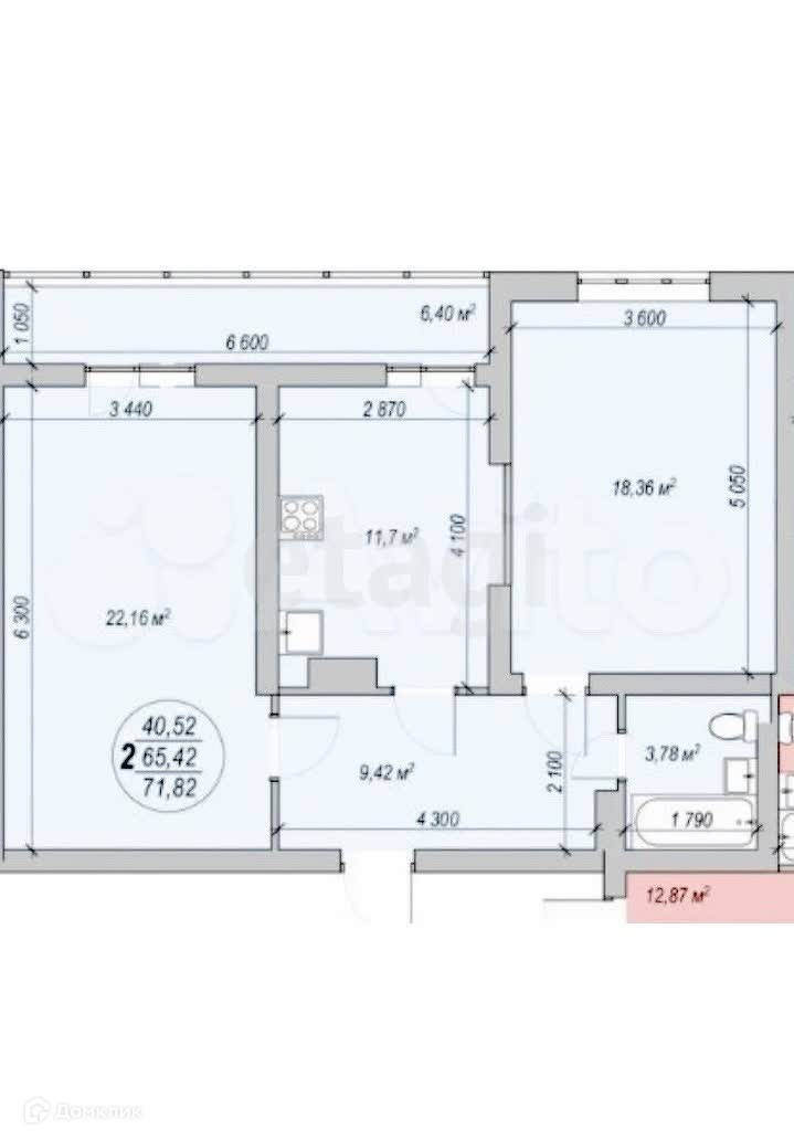 Общая площадь квартиры 72 кв. м., площадь кухни — 22,6 кв.м. Квартира расположена на 3 этаже 19 этажного монолитного дома. Высота потолков 2,90 метра. Квартира в черновой отделки с удобной планировкой, что дает возможность для создания дизайна мечты. Два выход на лоджию. В квартире установлены счётчики на отопление, электроэнергия, горячее и холодное водоснабжение. Установлена входная металлическая дверь.