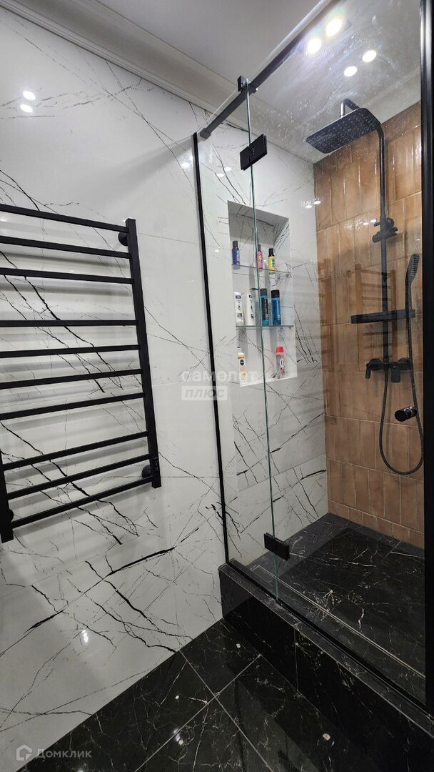 Плитка - широкоформатный керамогранит (производство Турция), под керамогранитом везде тёплый пол (лоджия, кухня, коридор, ванная). Сплит-система. Куплены по дизайн-проекту все осветительные приборы: дополняет комнату люстра в современном стиле, вспомогательным светом служат встроенные точечные светильники , трековые и подвесные светильники с разноуровневым расположением, бра. Увеличенные оконные проемы с боковым видом на Волгу.