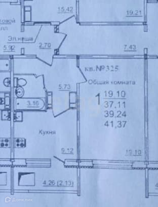 Общая площадь 41.37 м2