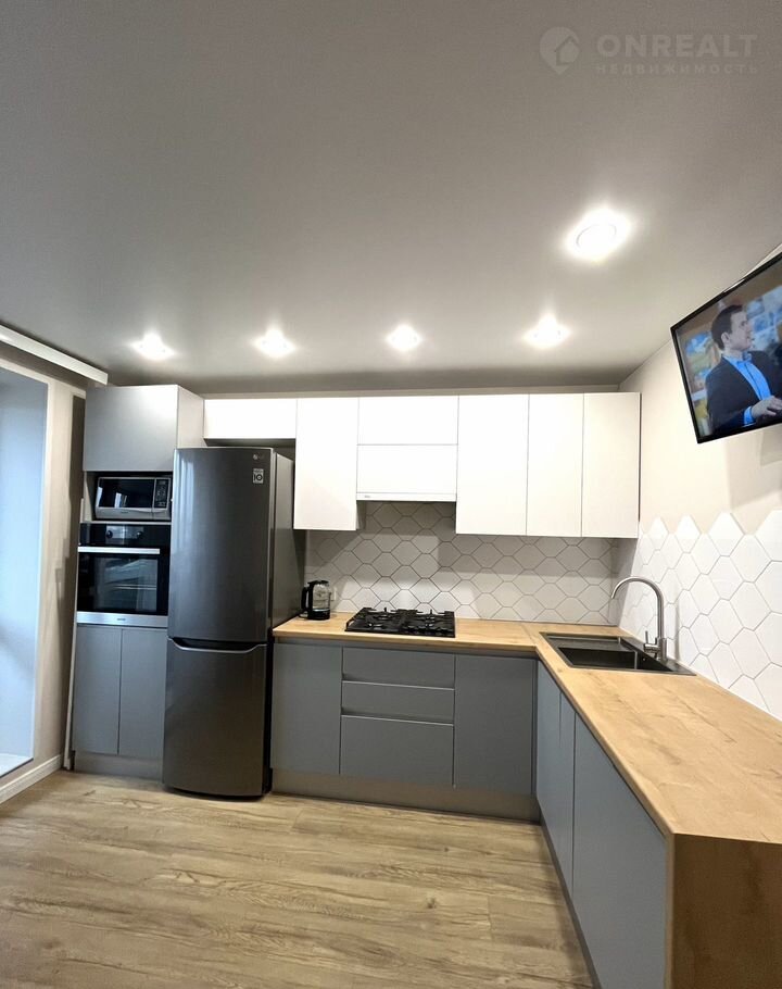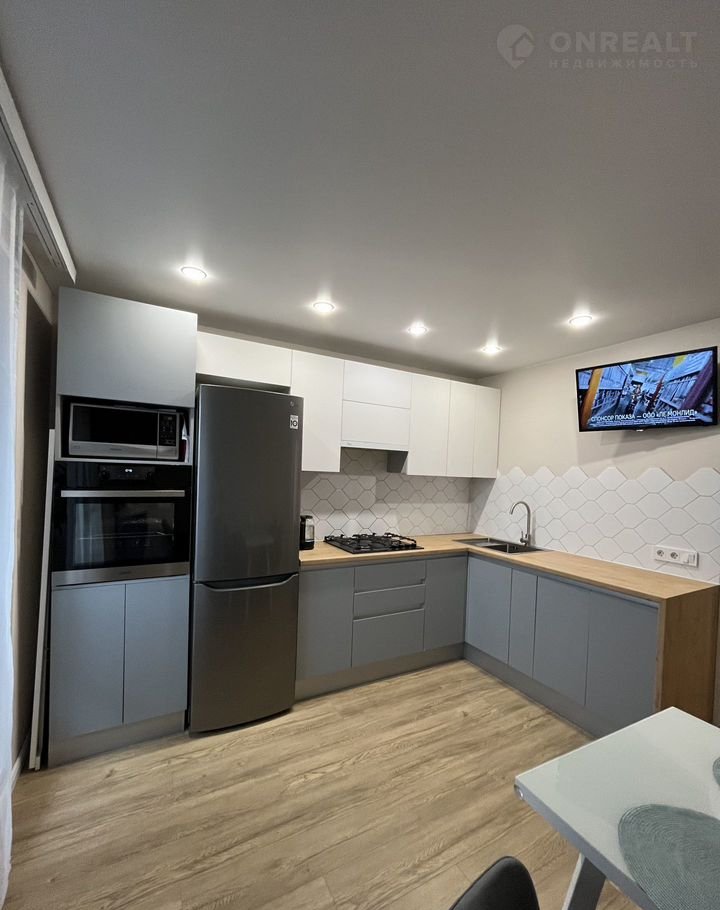 ✅ Комфорт на кухне чувствуется за счет светового зонирования, функциональности кухонного гарнитура, который оборудован современной техникой и великолепной обеденной группой с удобными мягкими стульями.