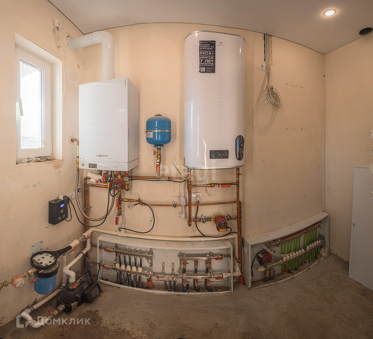Подключены все коммуникации. Установлен котел фирмы Viessmann, который обеспечивает отопление дома и горячую воду, в каждой комнате терморегуляторы на теплый пол. Так же выполнена полная разводка электрики, установлены розетки и выключатели.