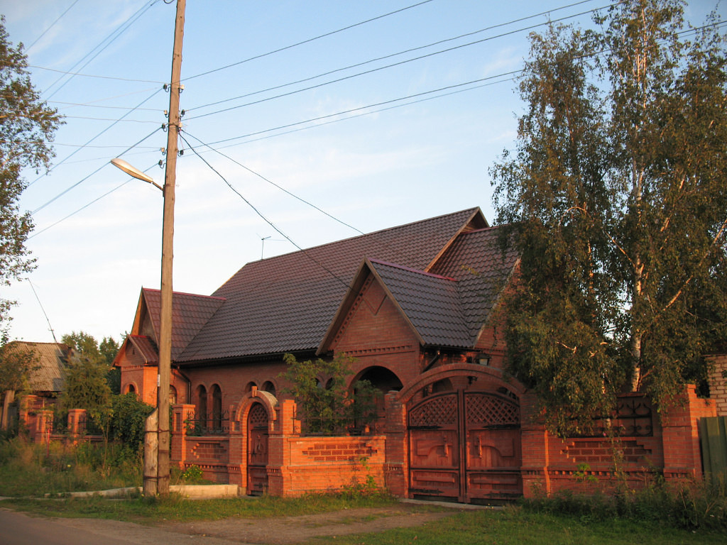 Дом-усадьба (6 комнат) в деревянном исполнении, облицован кирпичом. Общая площадь 105,9 кв.м. Строился по собственному проекту, качественно, для себя. Отопление местное (печь, эл.котел). В отделке и благоустройстве усадьбы использованы изделия ручной работы из дерева. Баня с теплыми эл.полами. Тёплый гараж 24,4 кв.м. Благоустроенный двор с брусчаткой. Кирпичная беседка с мангалом. Кованный мостик над водоемом, фонтанчик. Две теплицы, одна в кирпичном исполнении с печкой. Забор кирпичный. Ухоженный огород. Дом в центре города, победитель конкурса "Усадьба образцового порядка".