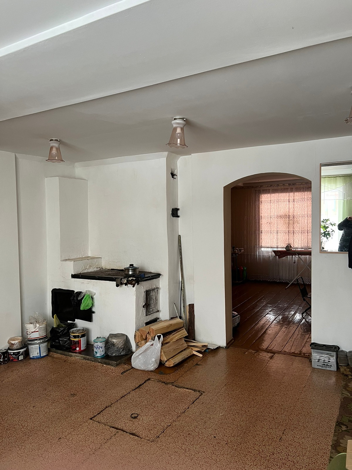 В доме имеется местное печное отопление, крыша железная (профлист), вода, слив,  сан узел совмещен (душевая кабина), натяжные потолки, стены гипсокартон, крытая ограда,  баня, гараж железный, сарай,   земельный участок  в собственности   592 кв.м.