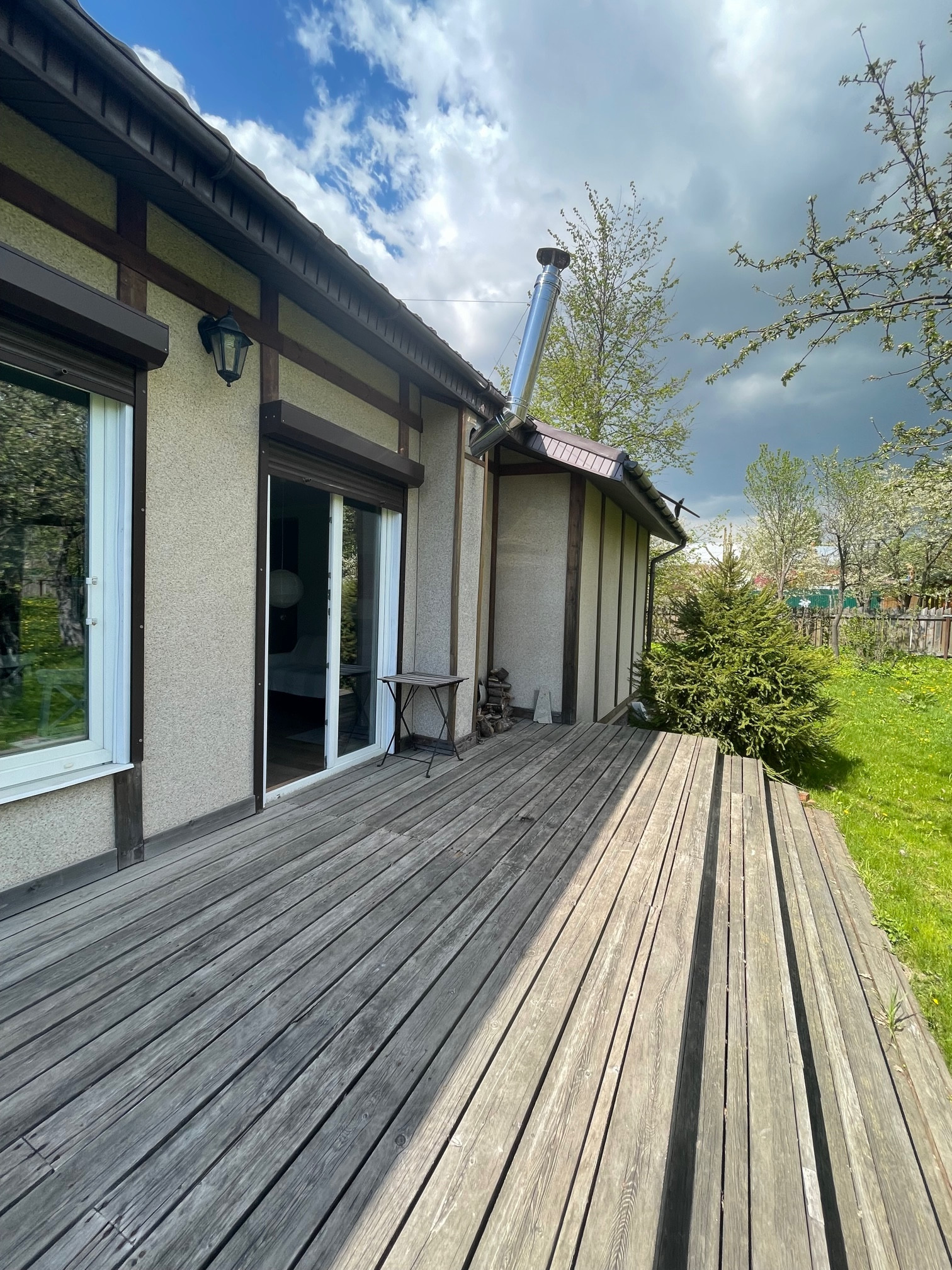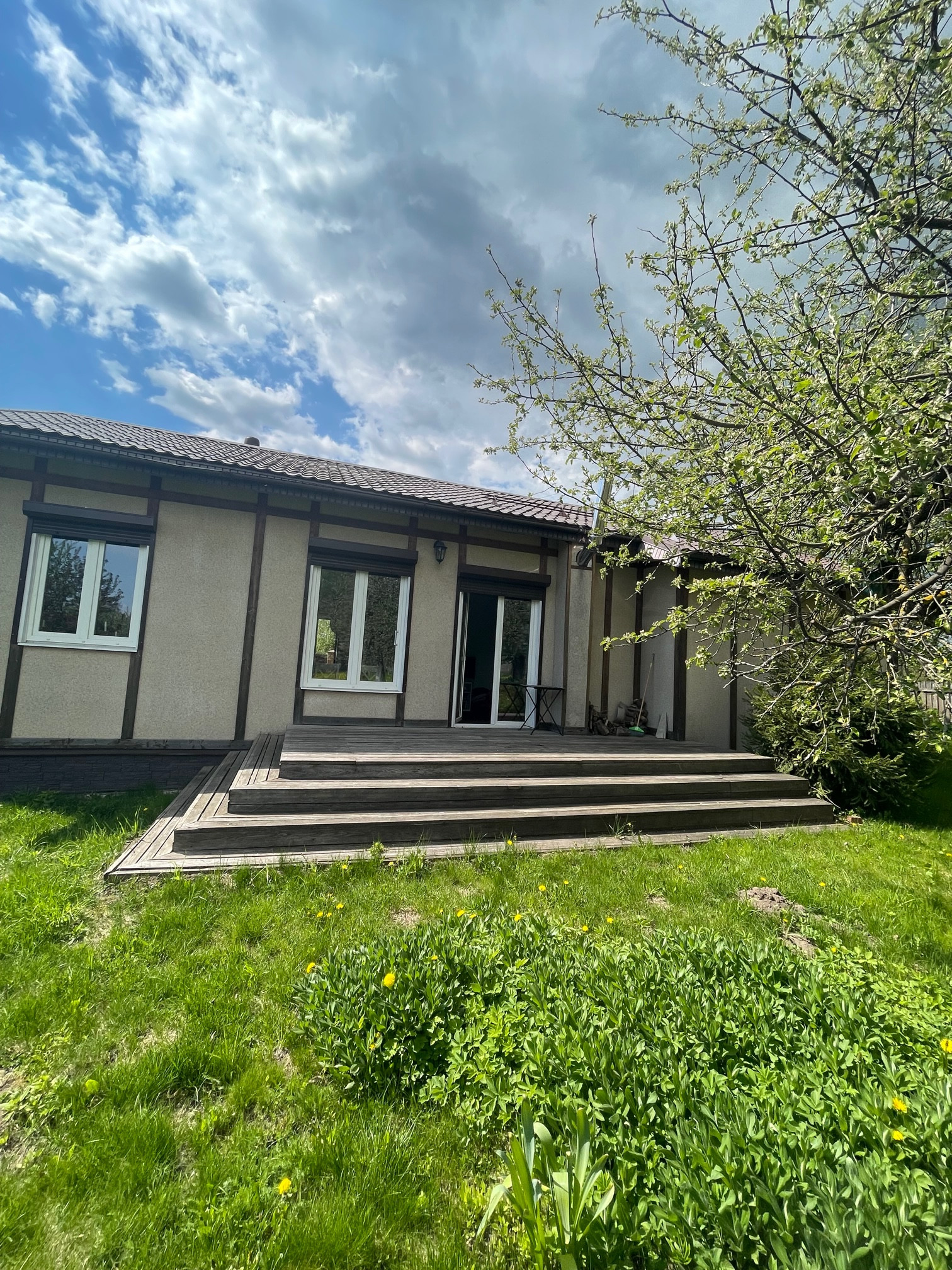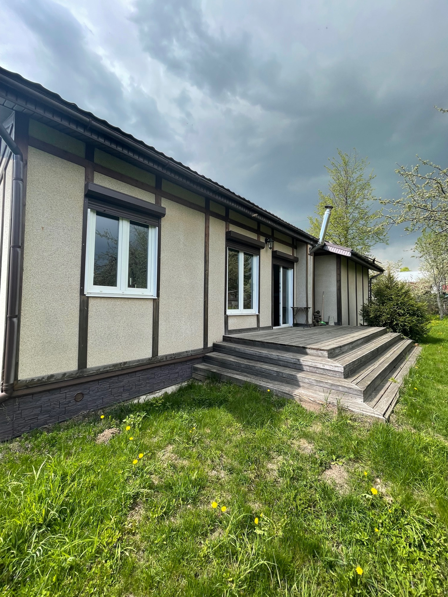 - жилой 1-но этажный дом, построен по финской технологии (деревянный каркас, цементно-стружечная плита, утеплитель), фундамент – ленточный, бетонный, крыша - металлочерепица, имеется чердачное пространство. Дом с хорошим ремонтом, мебелью, встроенной кухней, бытовой техникой, пластиковые окна, дровяная печь, два входа в дом оснащены металлическими дверями. Кухня-гостиная, четыре спальни, два с/у, терраса с видом на участок, подсобное помещение. Дом современный, живой, функционирующий, в очень хорошем состоянии. Участок огорожен, ровный, зеленый, правильной формы. Коммуникации все центральные, заведены в дом: электричество, газ, вода, канализация. Отапливается дом магистральным газом, душевая кабинка, раковина, унитаз, сауна – все в доме.