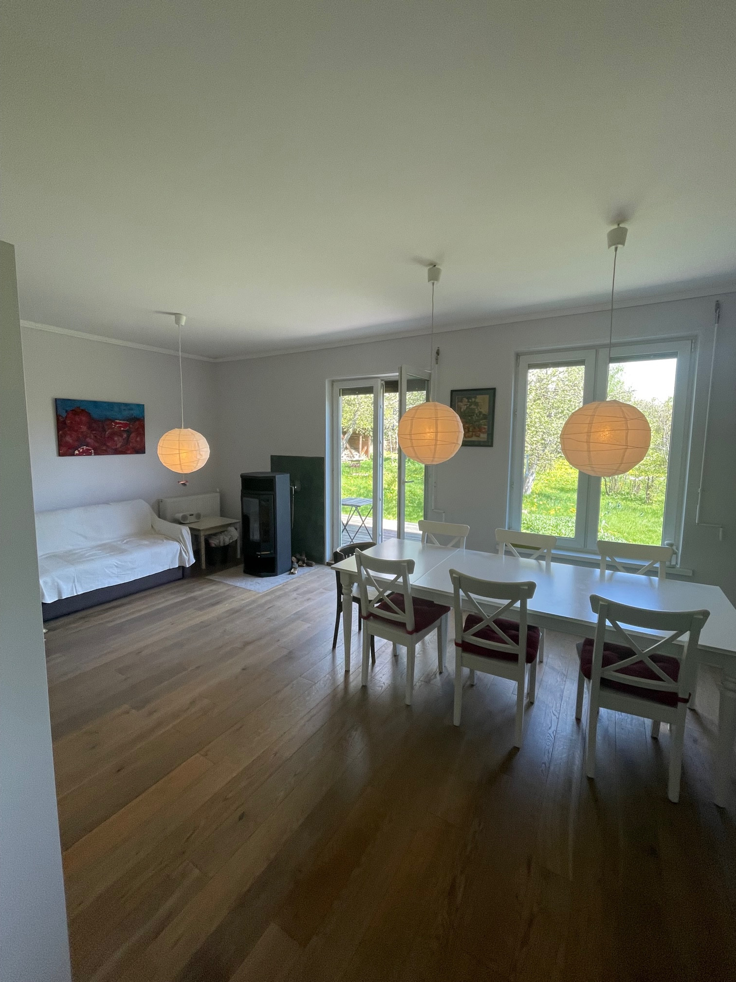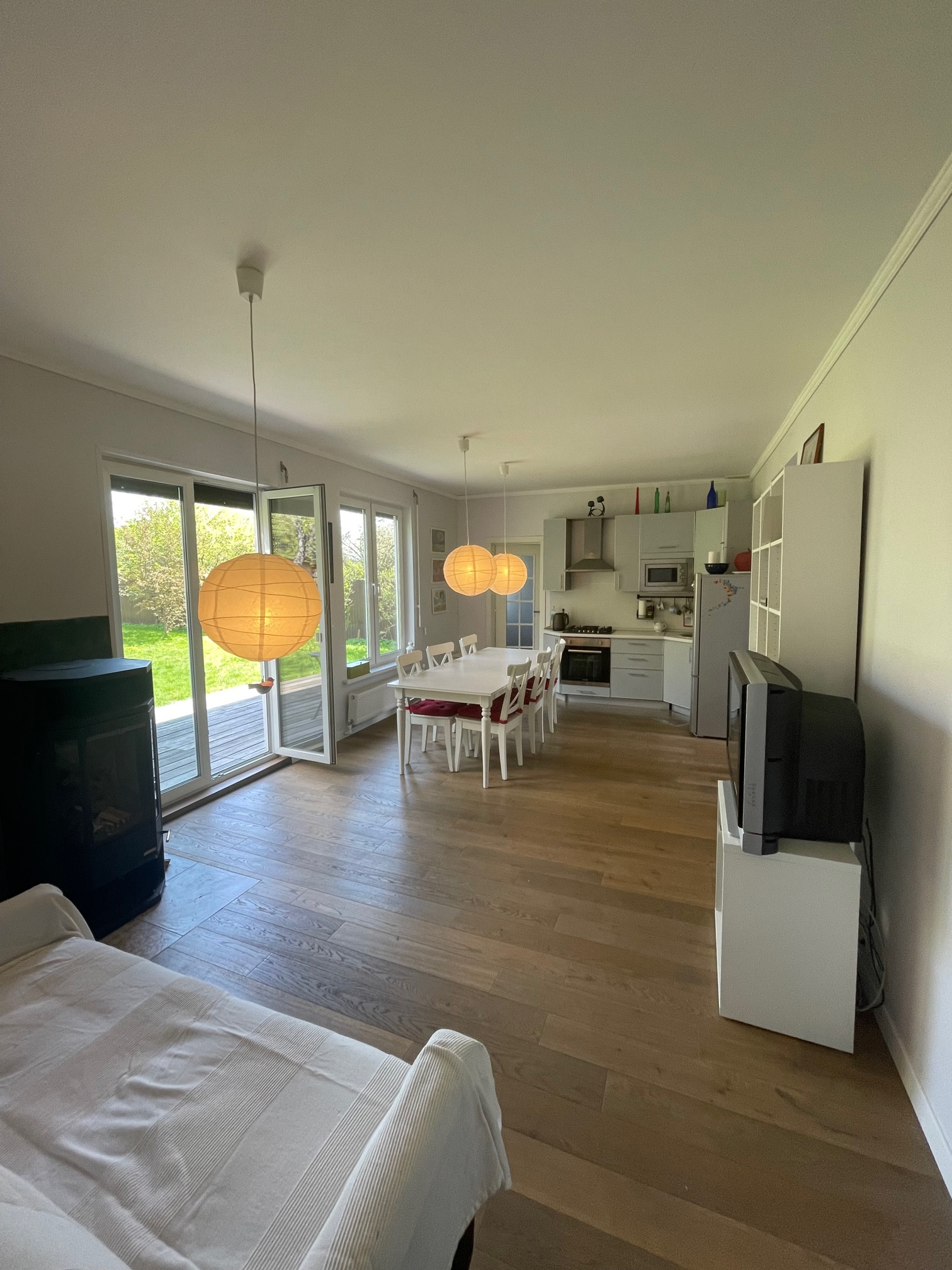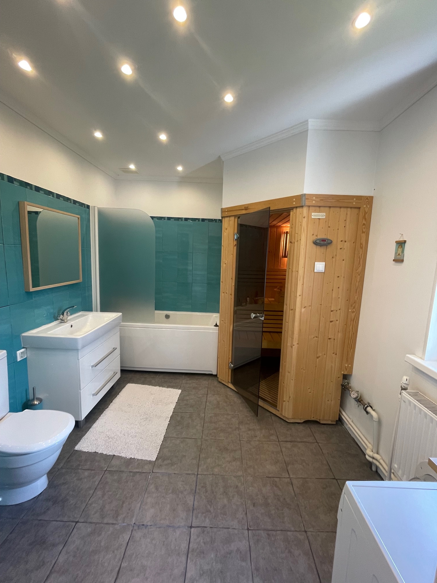 - жилой 1-но этажный дом, построен по финской технологии (деревянный каркас, цементно-стружечная плита, утеплитель), фундамент – ленточный, бетонный, крыша - металлочерепица, имеется чердачное пространство. Дом с хорошим ремонтом, мебелью, встроенной кухней, бытовой техникой, пластиковые окна, дровяная печь, два входа в дом оснащены металлическими дверями. Кухня-гостиная, четыре спальни, два с/у, терраса с видом на участок, подсобное помещение. Дом современный, живой, функционирующий, в очень хорошем состоянии. Участок огорожен, ровный, зеленый, правильной формы. Коммуникации все центральные, заведены в дом: электричество, газ, вода, канализация. Отапливается дом магистральным газом, душевая кабинка, раковина, унитаз, сауна – все в доме.