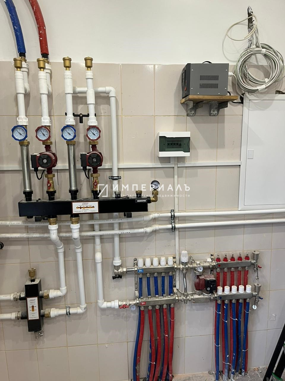 Коммуникации: электричество 15 квт, газ магистральный, 1 и 2 этажи – теплые водяные полы, в кухне-столовой – напольные конвекторы, радиаторы в каждом помещении, газовый котел Бакси, водоснабжение – скважина 54 м, зимний водопровод, горячее и холодное водоснабжение, септик Топаз. Кондиционеры.