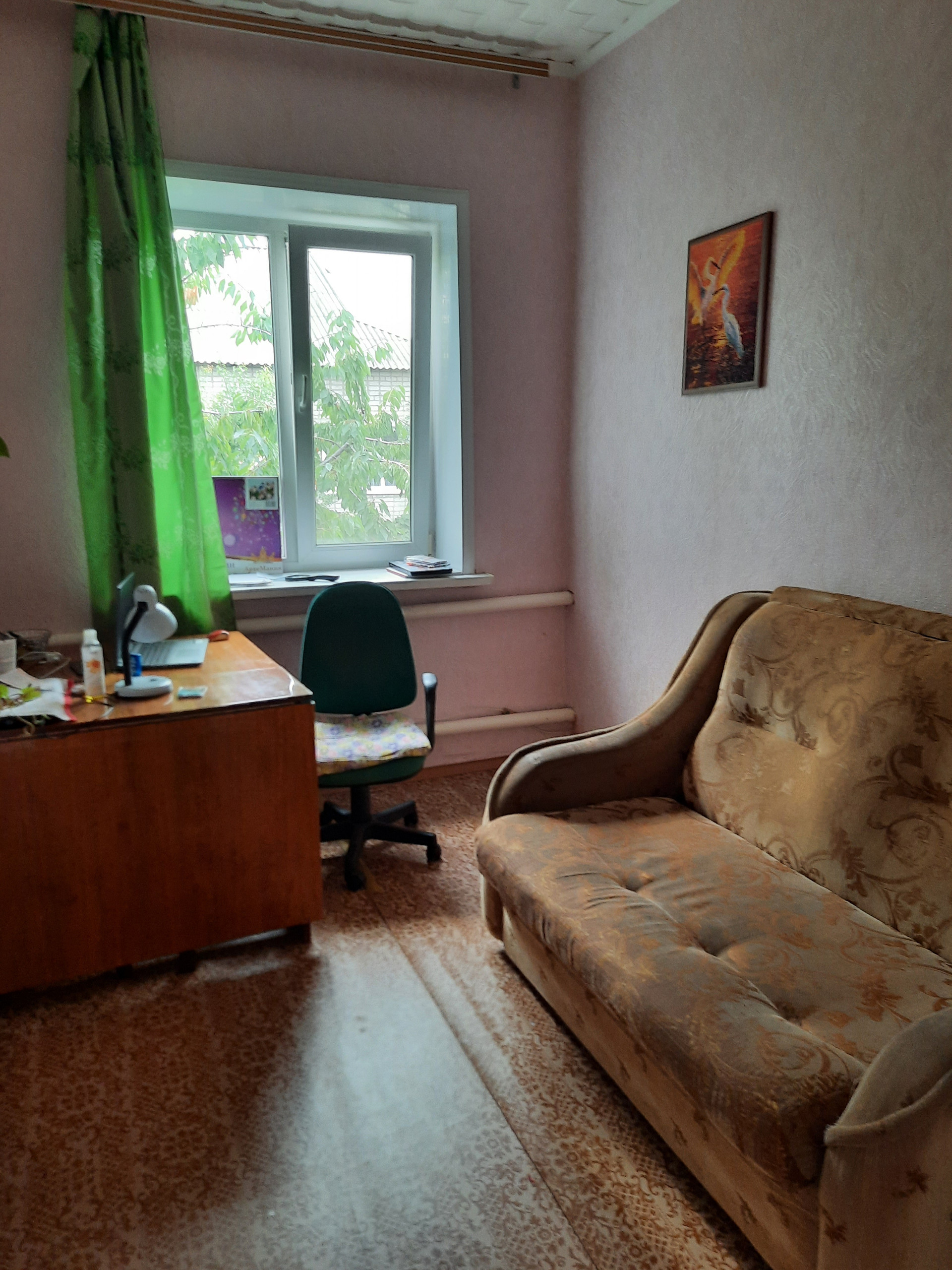 Дом высокий, крепкий, построенный на совесть. Есть очень глубокий погреб, гараж, сараи. Хороший сад: виноград, яблони, вишня, черешня, слива, абрикосы, смородина, малина, крыжовник, земля ухоженная.