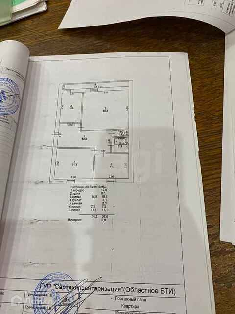 Общая площадь 57.6 м2