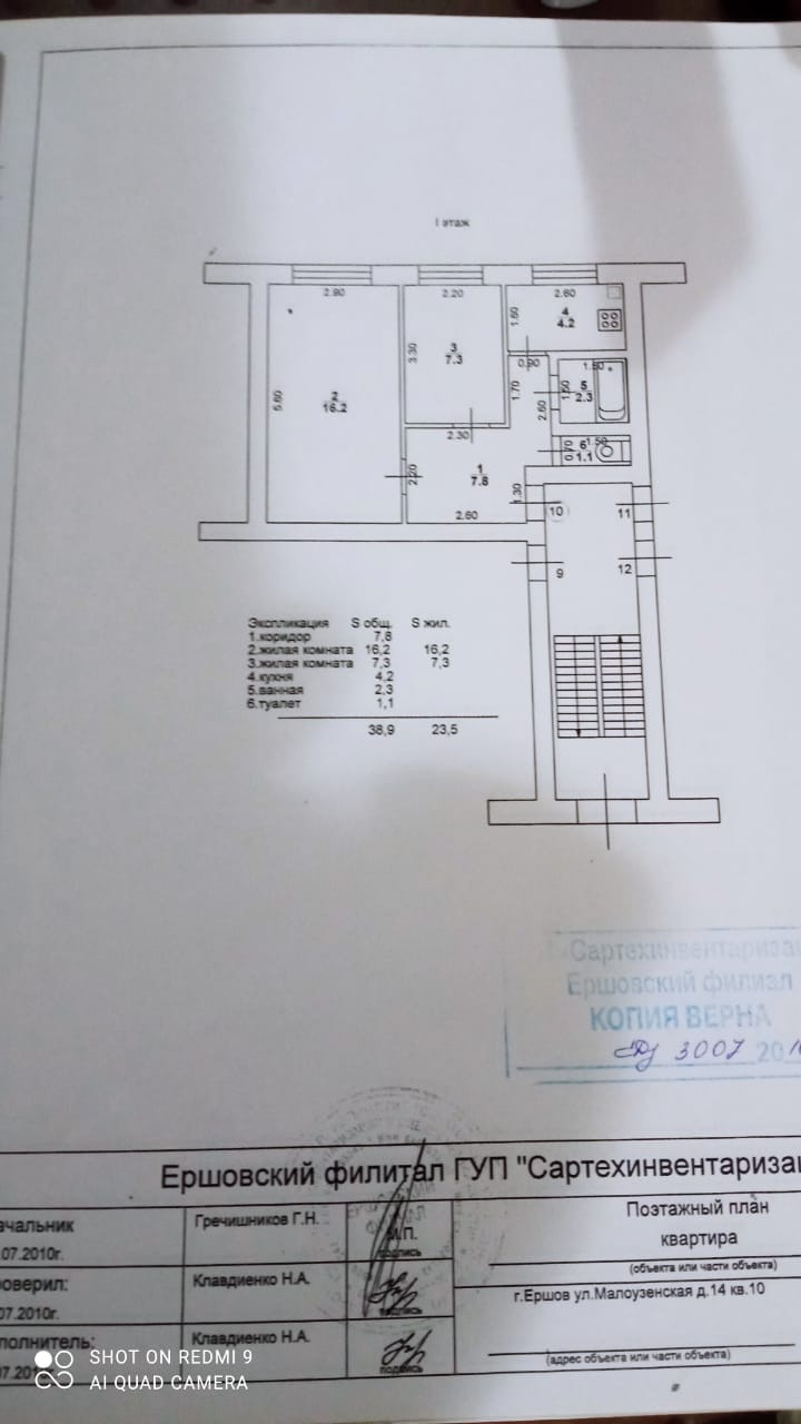 2-комнатная квартира, 38.9 м2, этаж 1 / 1, на продажу в Ершове, Малоузенская улица, 14