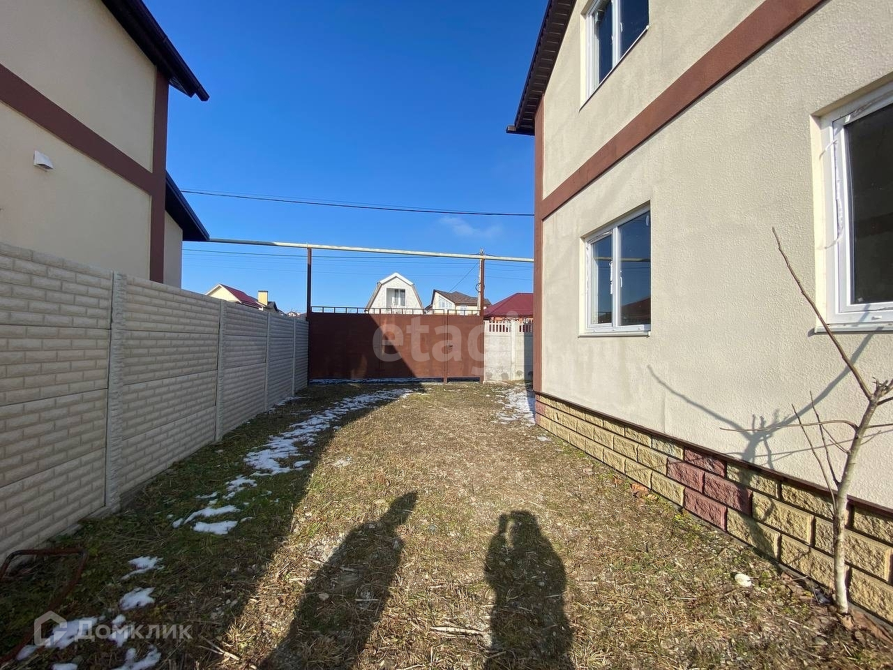 Стены - пенобетон под штукатуркой короед. Крыша - мягкая кровля. Окна - ПВХ. Двор засыпан щебенкой. Установлен забор и ворота. Санузлы на каждом этаже.