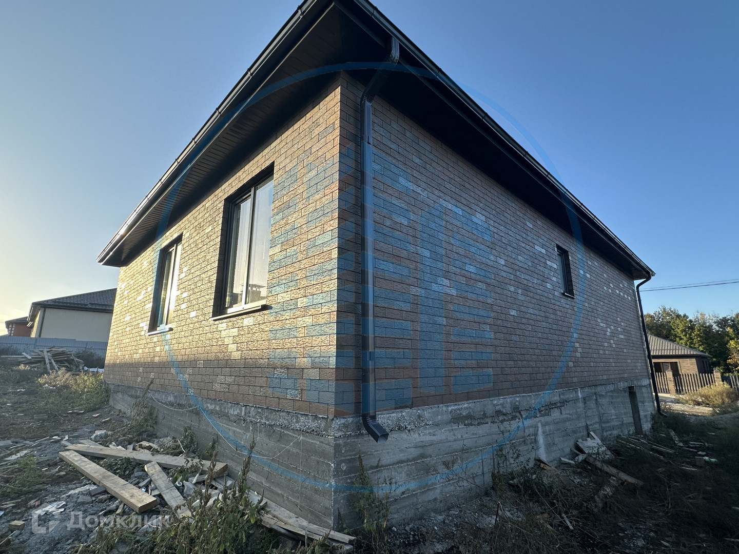 Вокруг дома бетонная отмостка.