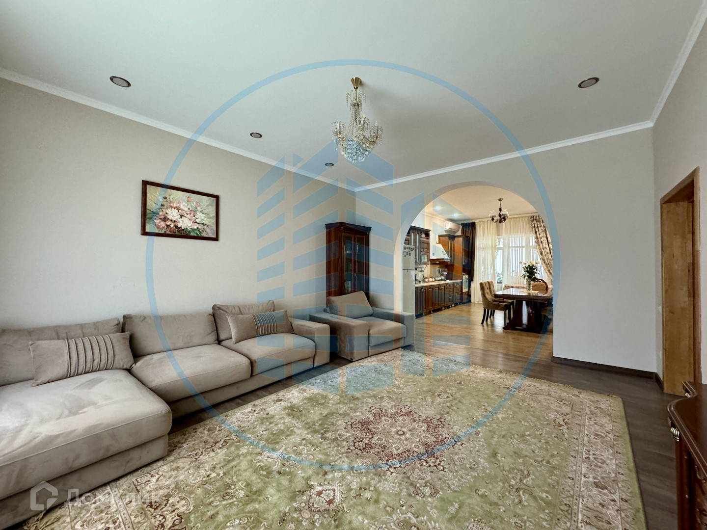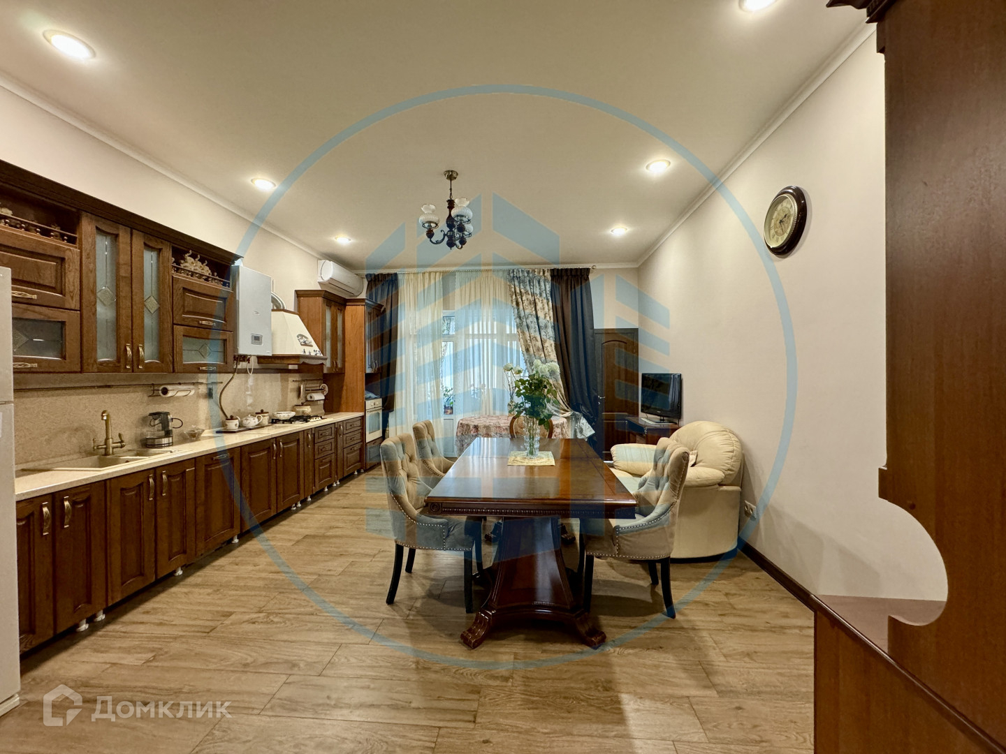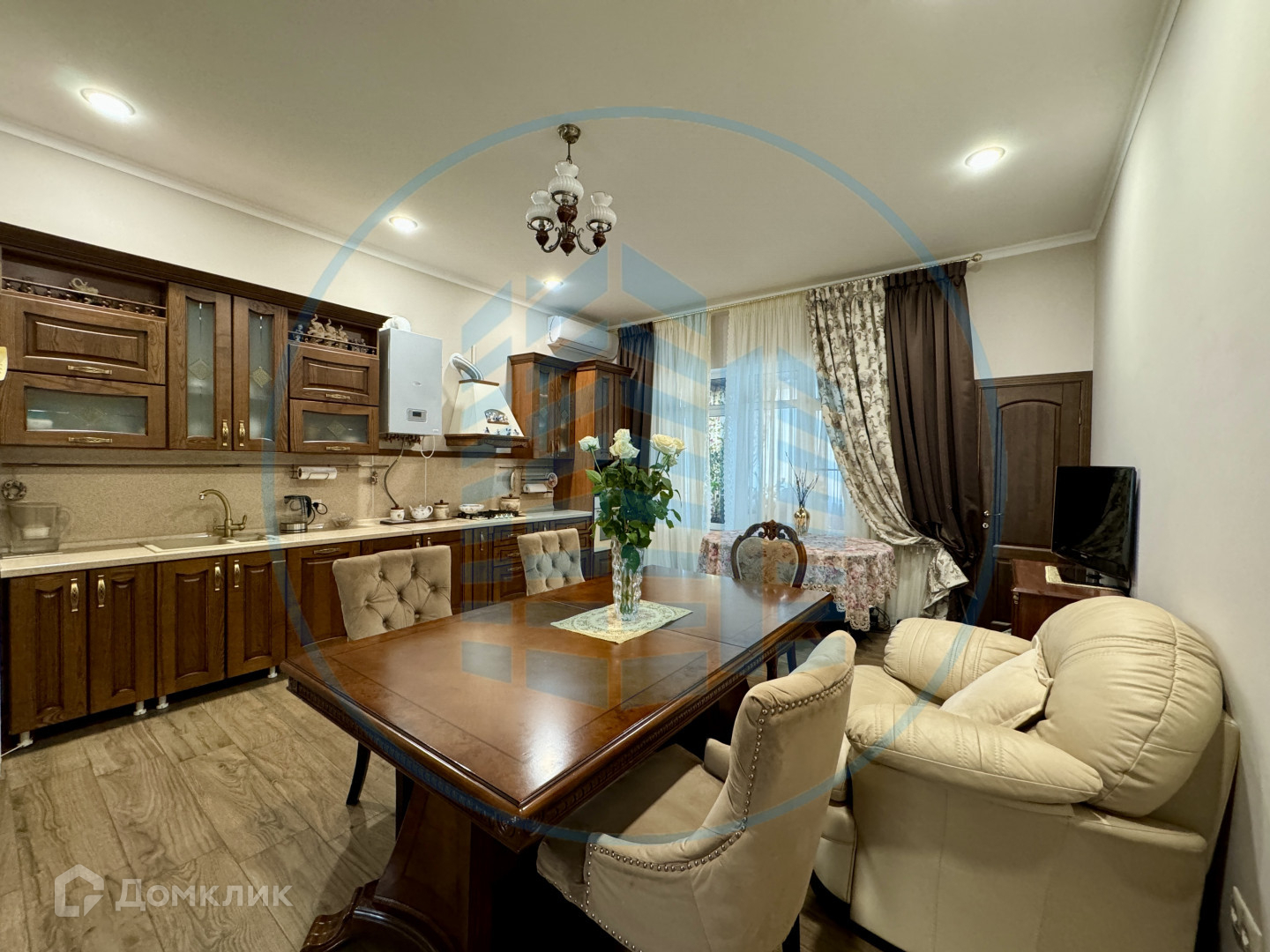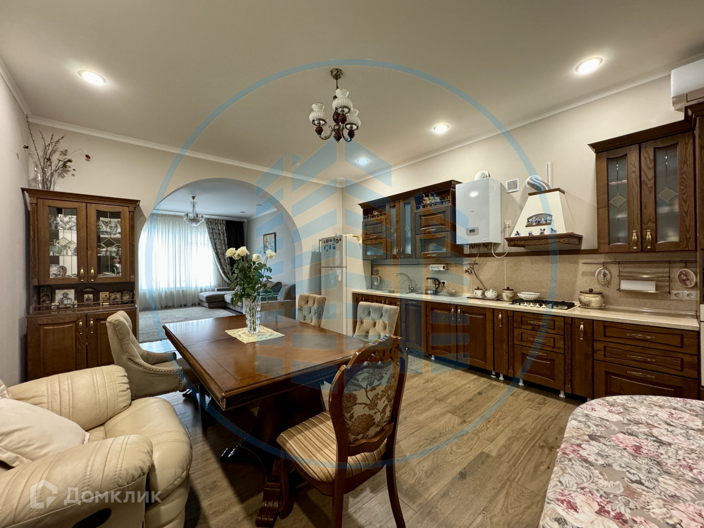 Просторный холл, большая кухня-гостиная, четыре изолированный спальни, два санузла. Классический ремонт.