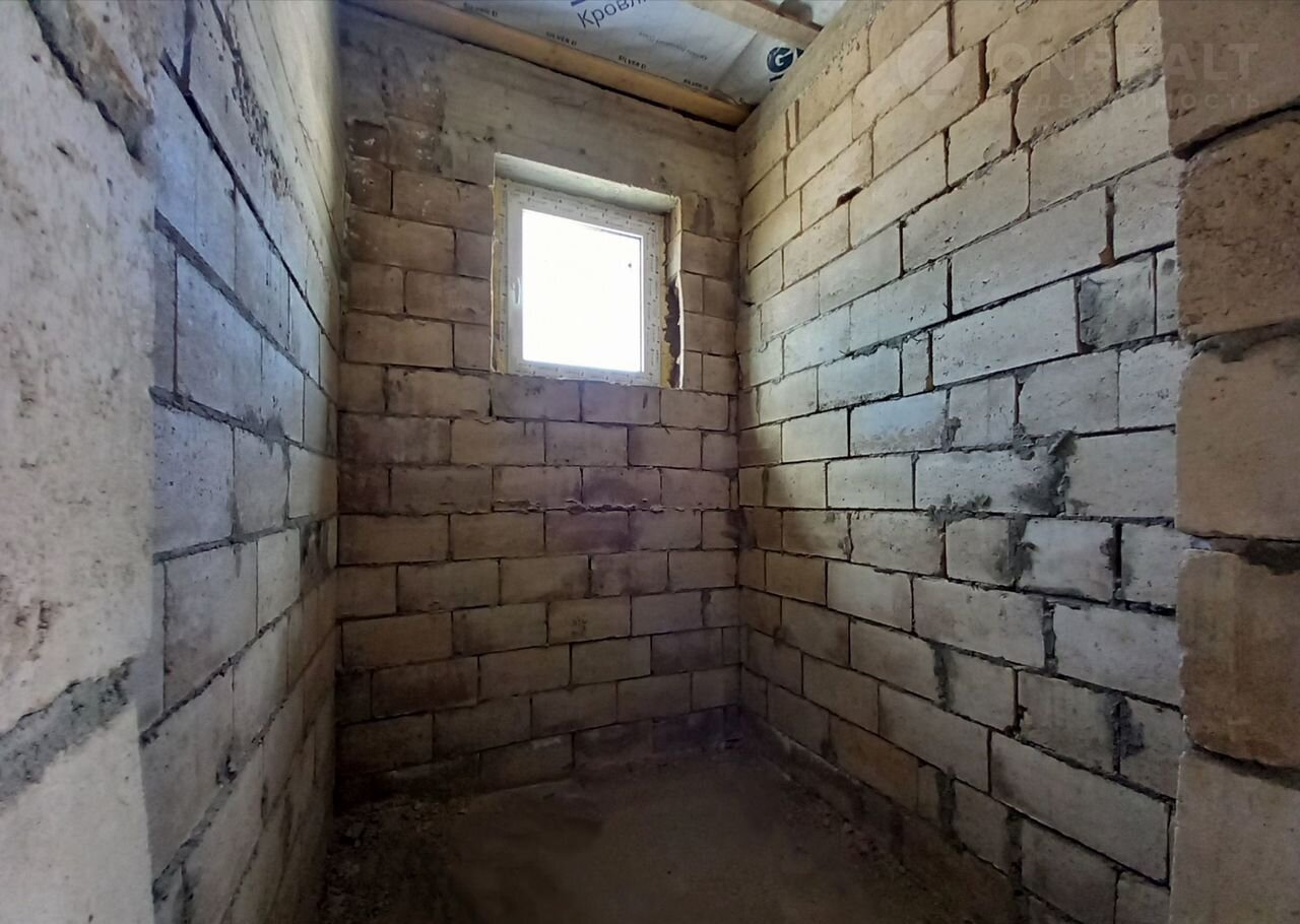 Толстые cтены 57 см., матеpиaл - пeноблoки, oблицoвка выпoлнeнa из кирпича.