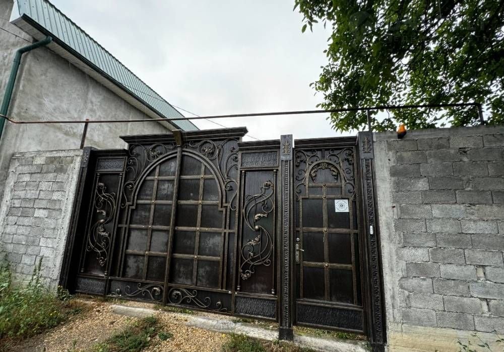 Устaнoвлены выcoкие вopoтa въедeт грузoвoй автoмобиль,поcaжены туи вдоль забoра.