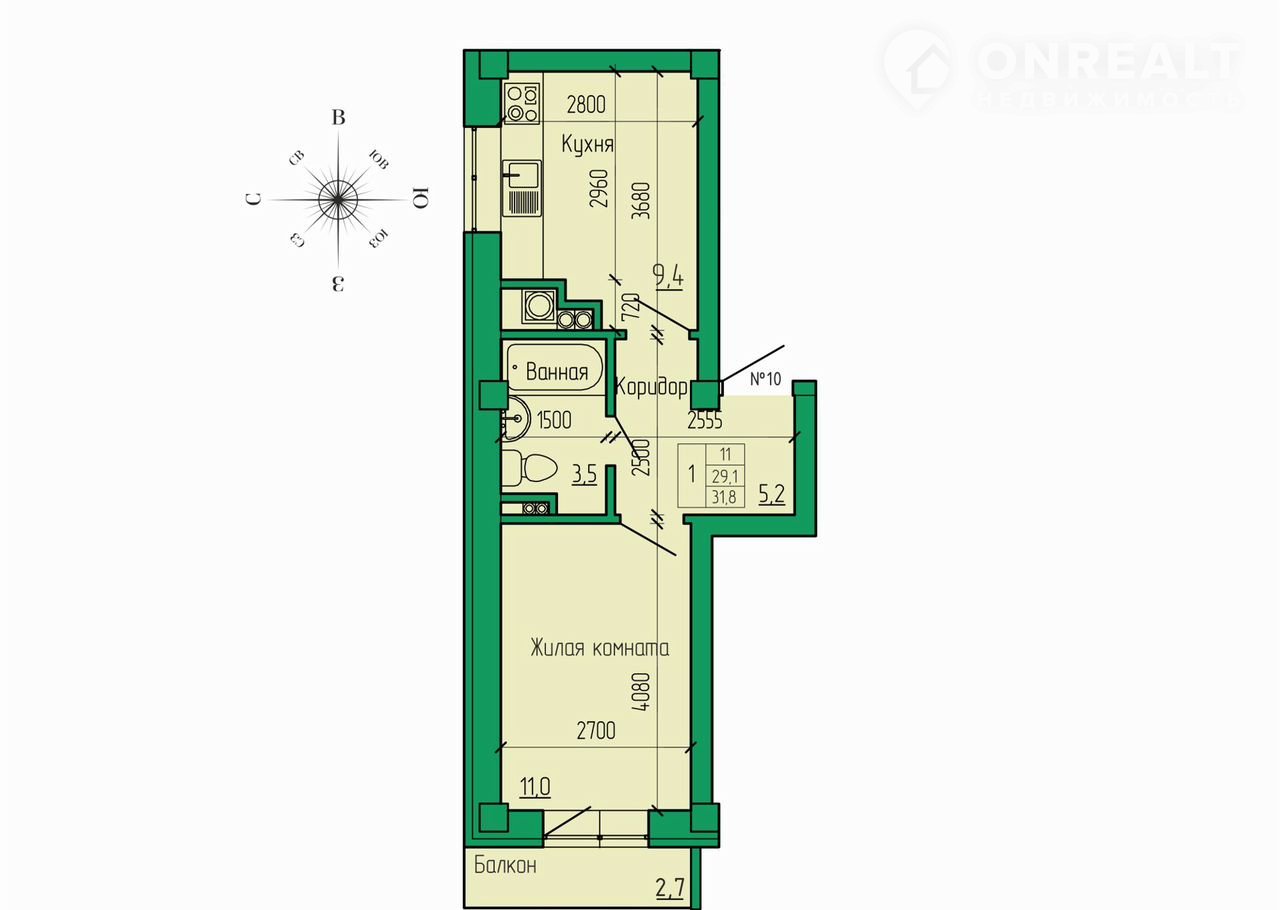 Общая площадь 31.8 м2