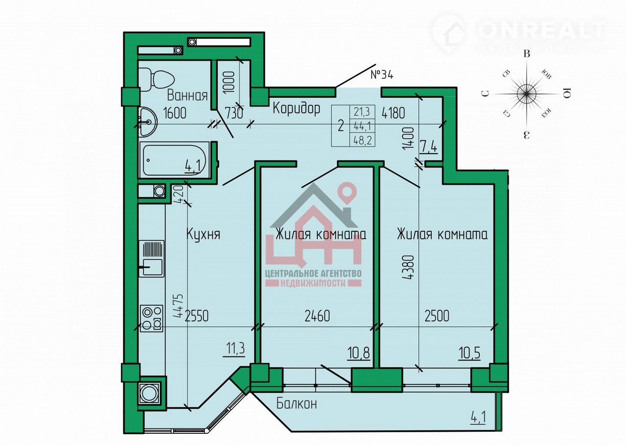 Общая площадь 48.2 м2