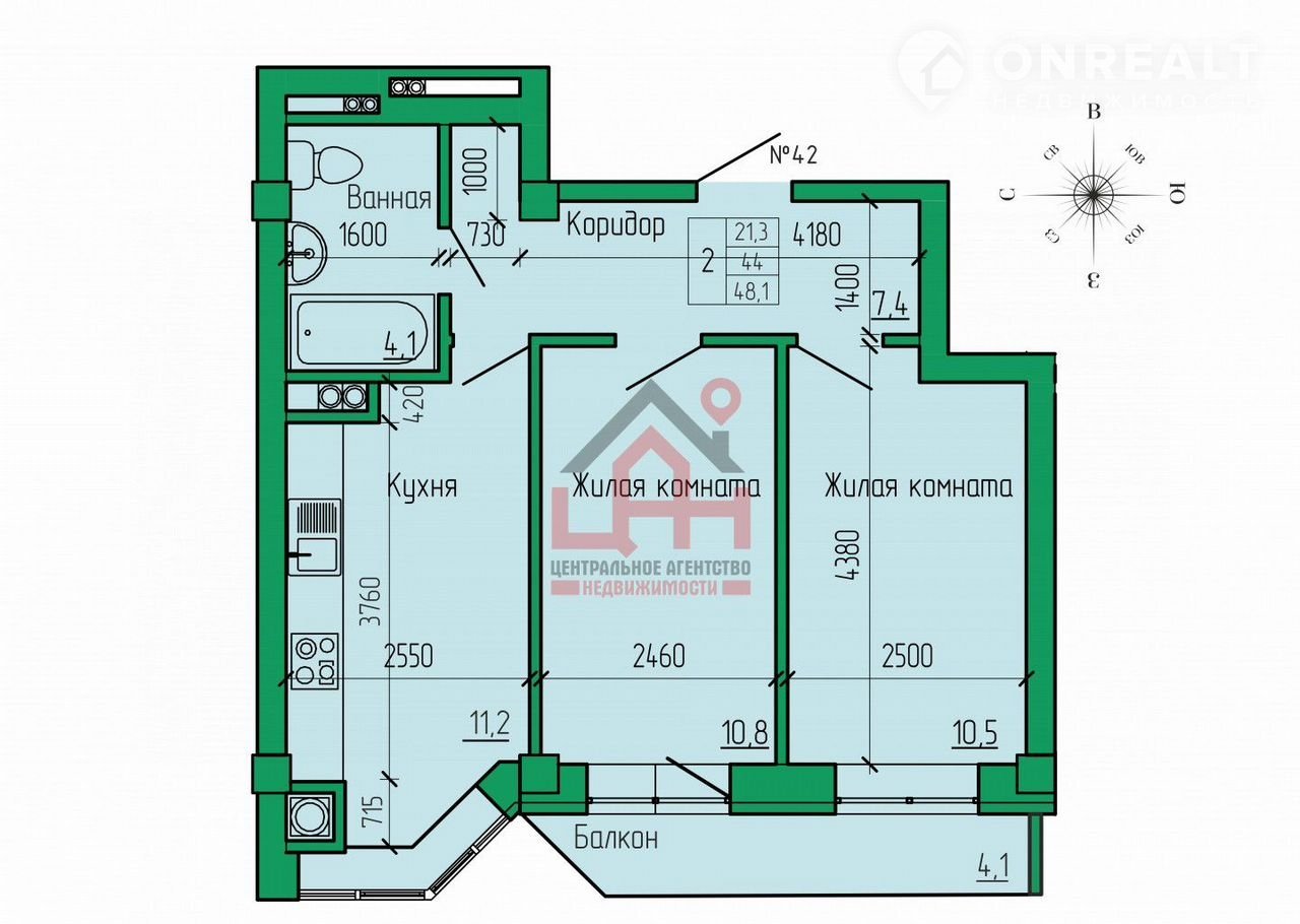 Общая площадь 48.1 м2