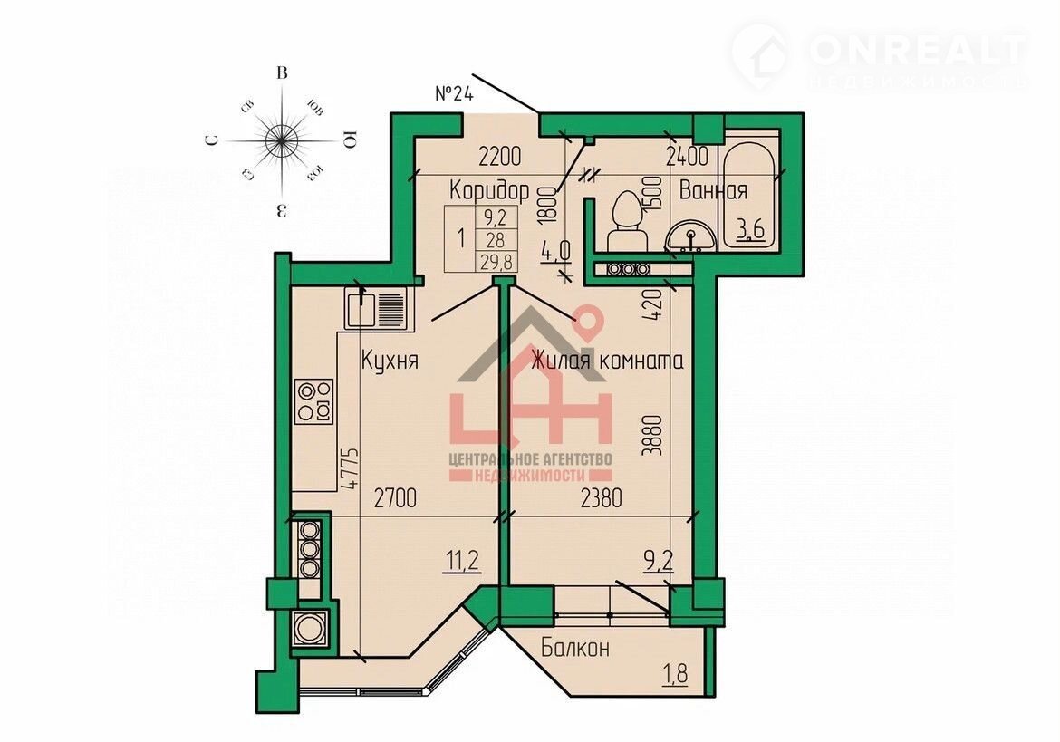 Общая площадь 29.8 м2