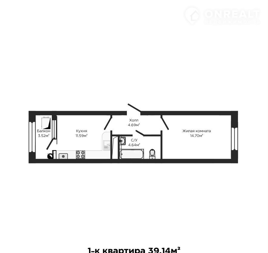 Общая площадь 39.1 м2