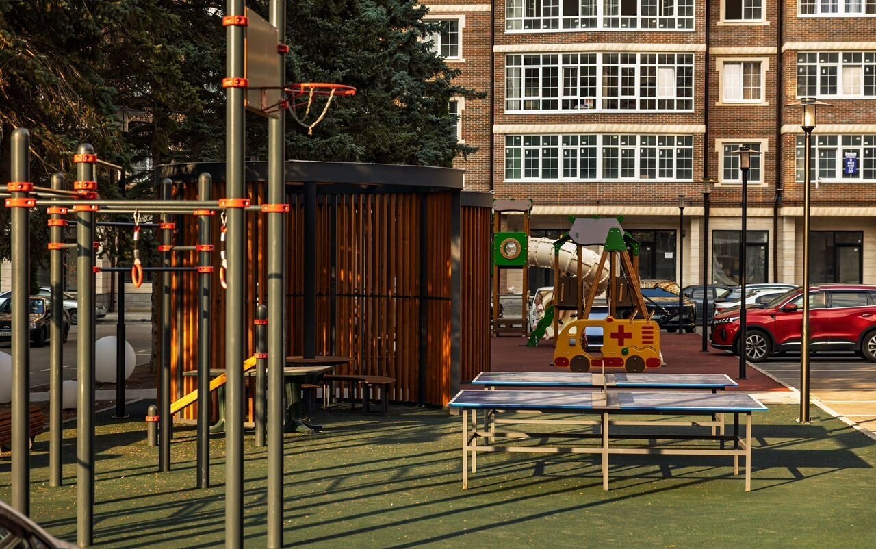* Детские, спортивные площадки и места для отдыха прямо во дворе