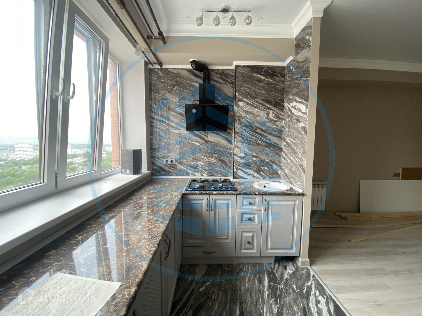 Большая, светлая  студия с отличной  удобной планировкой. В квартире сделан качественным ремонт, зона кухни вынесена под окно, просторный коридор, вместительный сан узел. Индивидуальное отопление, теплые полы. Окна выходят на южную сторону с прекрасным видом на Эльбрус.