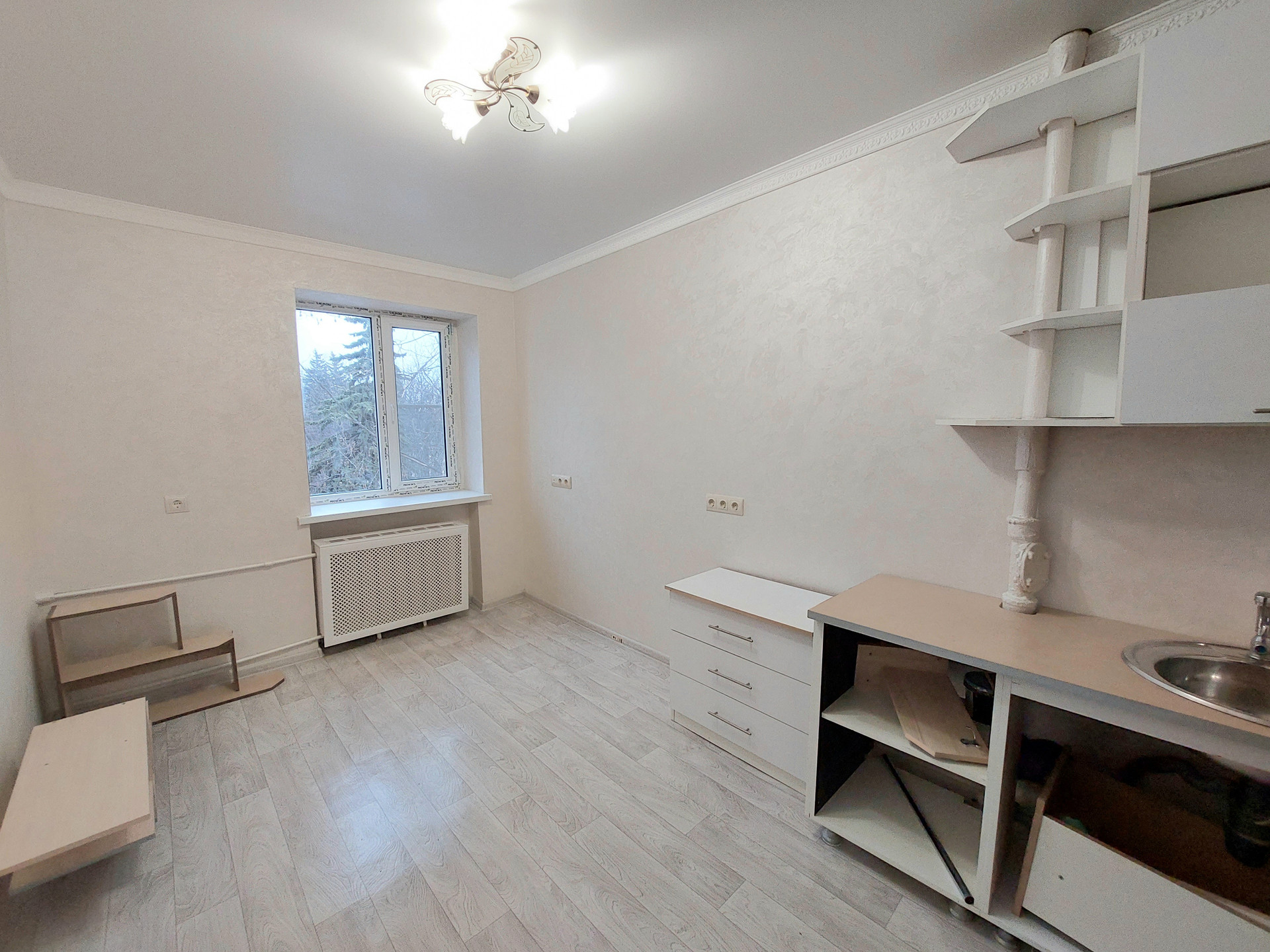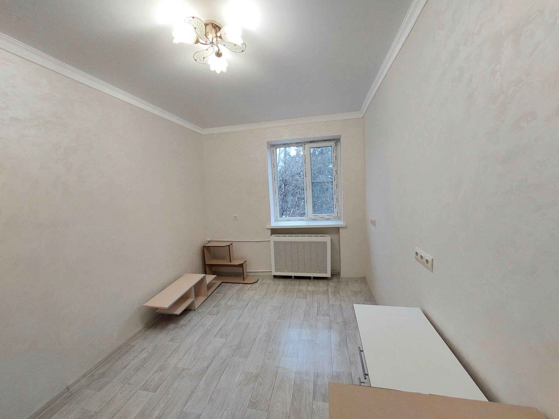 Заменена новая входная сейфовая дверь, стеклопакет, новый радиатор, медная проводка, заведён интернет, натяжные потолки, полы линолеум с новой стяжкой, стены веницианка.