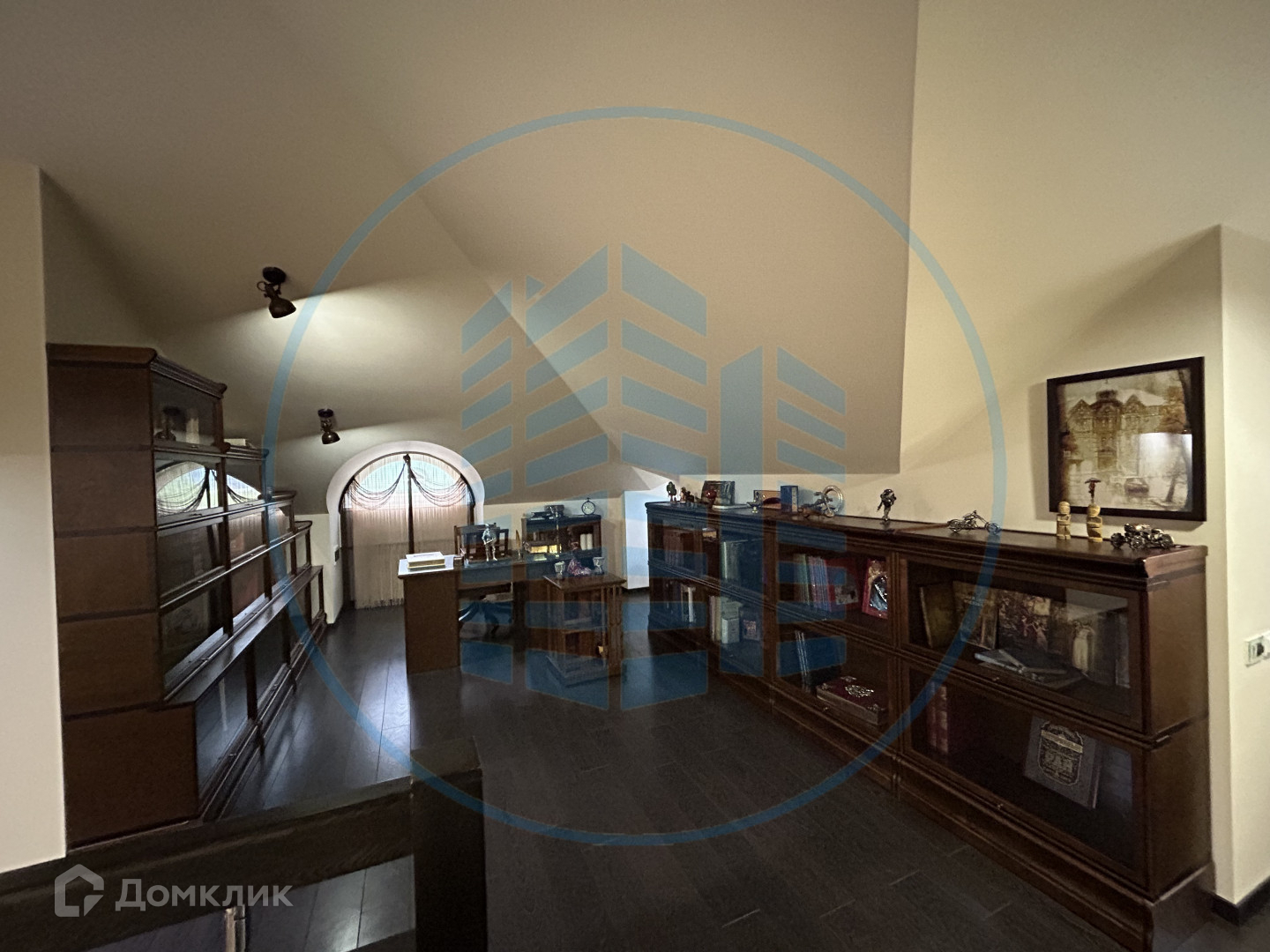 На втором этажа расположена библиотека собранная по индивидуальному заказу из массива дерева. Кинозал с мягкой подсветкой и большим угловым диваном. Постирочная комната со всем необходимым. Большая гардеробная комната со всей необходимой мебелью для хранения. Ванная комната с полноценной баней.