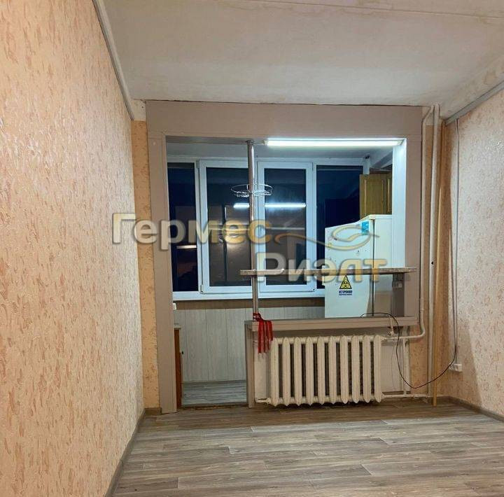 Кухня оборудована на лоджии. Санузел совмещенный. Просторная комната.