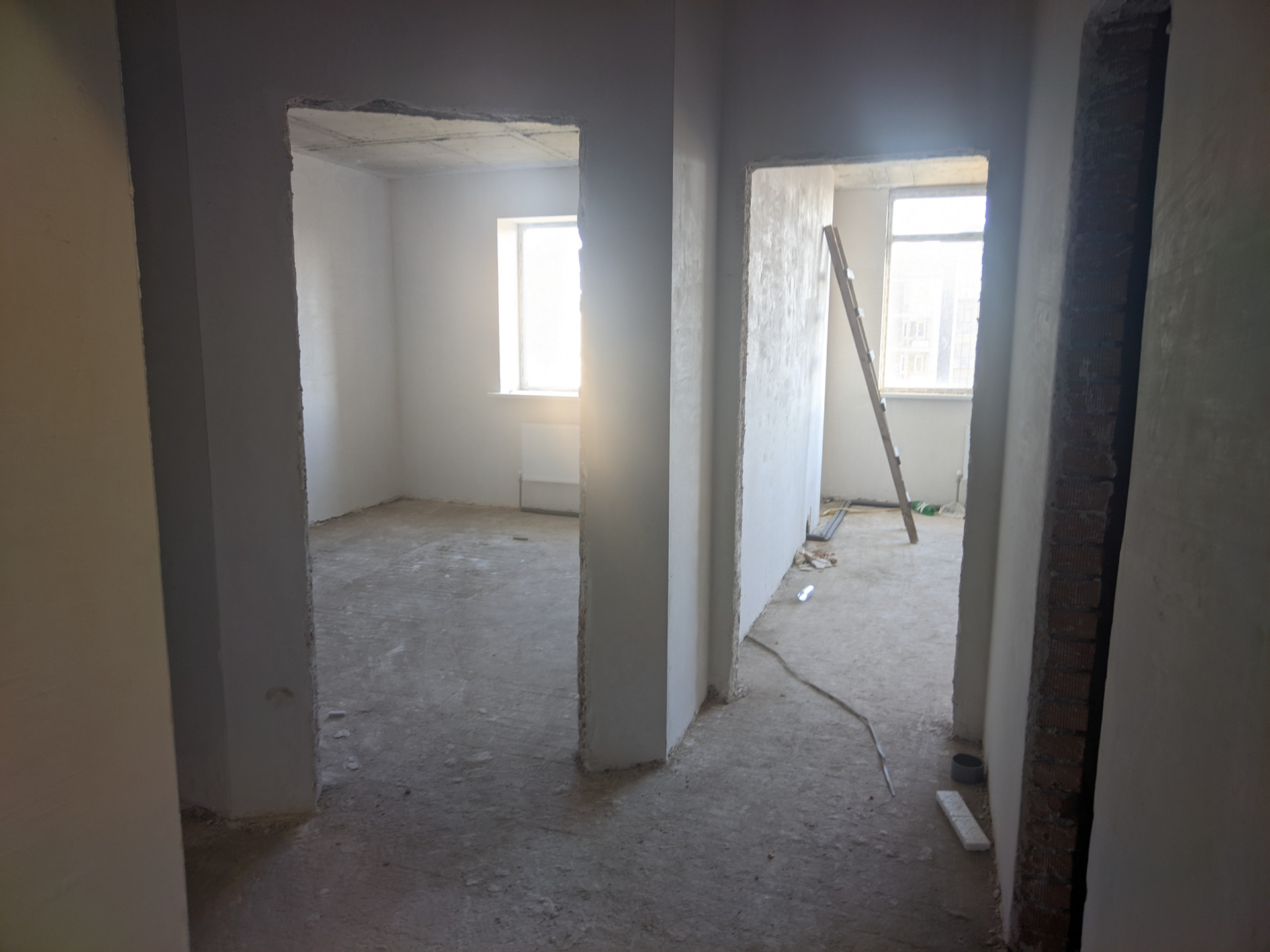 Во всех квартирах установлены металлические входные двери, окна ПВХ, радиаторы и двухконутрные котлы. На полу — бетонная стяжка, стены — оштукатуренные, высота потолка 3 м.