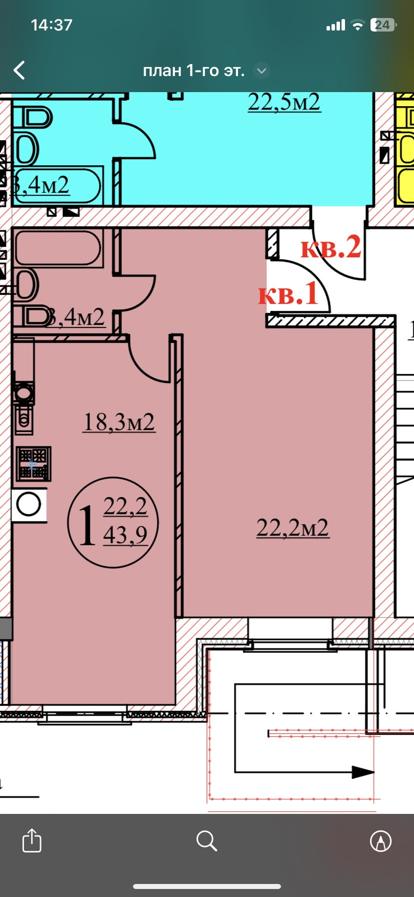 Общая площадь 43.9 м2