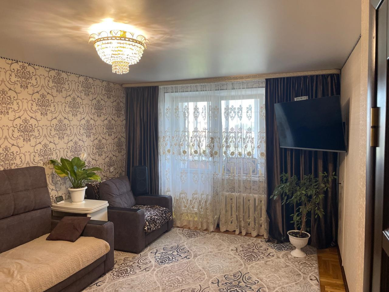 Квартира полностью укомплектована мебелью и бытовой техникой.