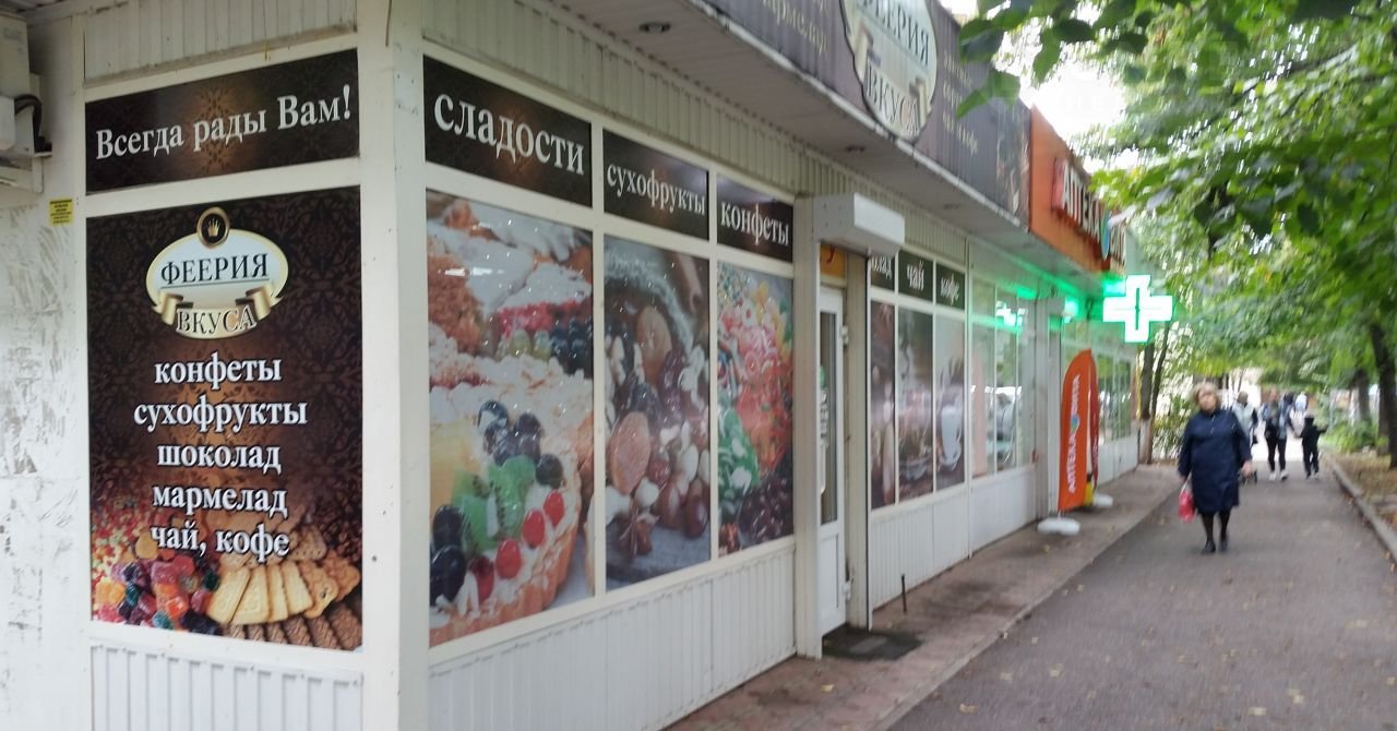 Помещение на красной линии от проезжей части ул. Долина Роз с большим автомобильным и пешеходным трафиком, буквально через дорогу от Педагогического института, бесплатные парковочные места по соседству. Магазин находится в большом густо населенном микрорайоне. Большое витражное остекление. имеется санузел и большое подсобное помещение с отдельным входом.