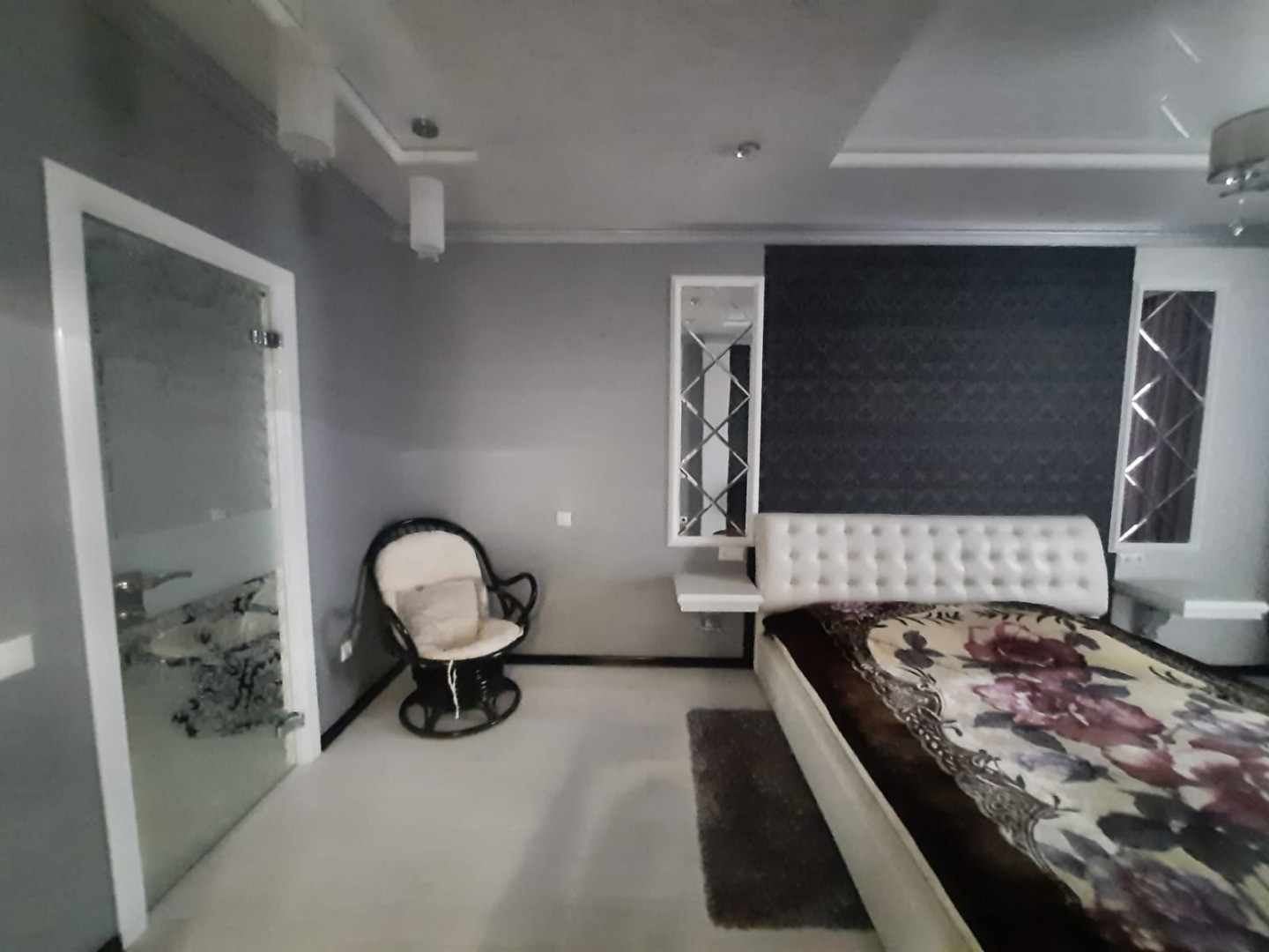 Планировка: большая прихожая, раздельный санузел, кухня гостиная 40 кв.м и спальня с гардеробной
