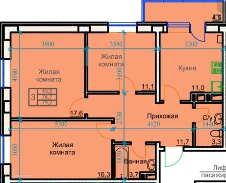 Общая площадь 79.2 м2