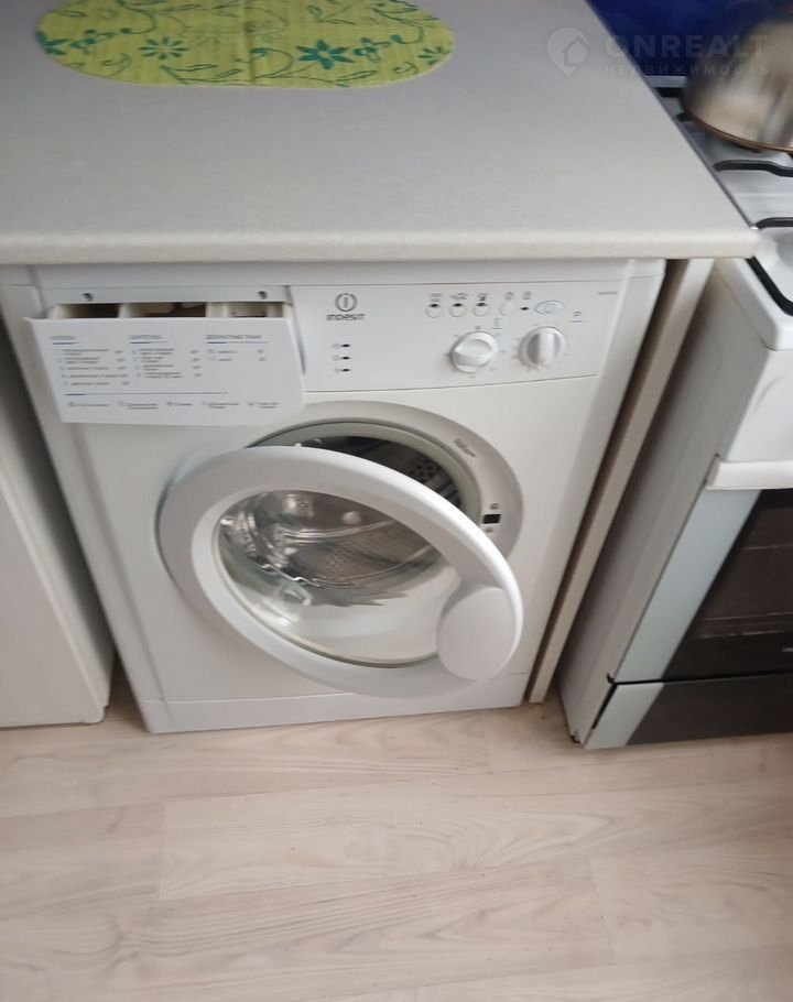 Кухня оборудована необходимой техникой: плитой, холодильником и стиральной машиной. Санузел раздельный, оформлен плиткой.
