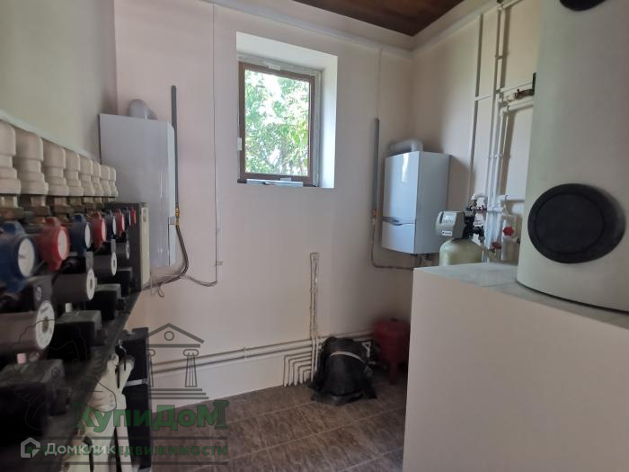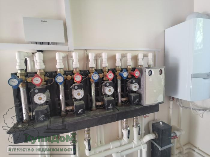 На первом этаже: огромный зал с камином, ванная комната (20 м. кв.), топочная (где расположены 2 газовых котла, на улице стоят датчики, которые включают котлы при снижении температуры), гардеробная.